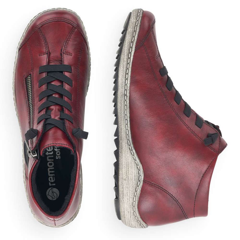 Na první pohled Vás upoutá výrazná barva této kotníkové obuvi značky REMONTE (jedná se o vyšší řadu značky RIEKER).