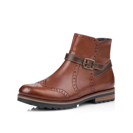 Zimní kotníkové boty z pravé kůže s povrchovou perforací, značky REMONTE (jedná se o vyšší řadu značky RIEKER).