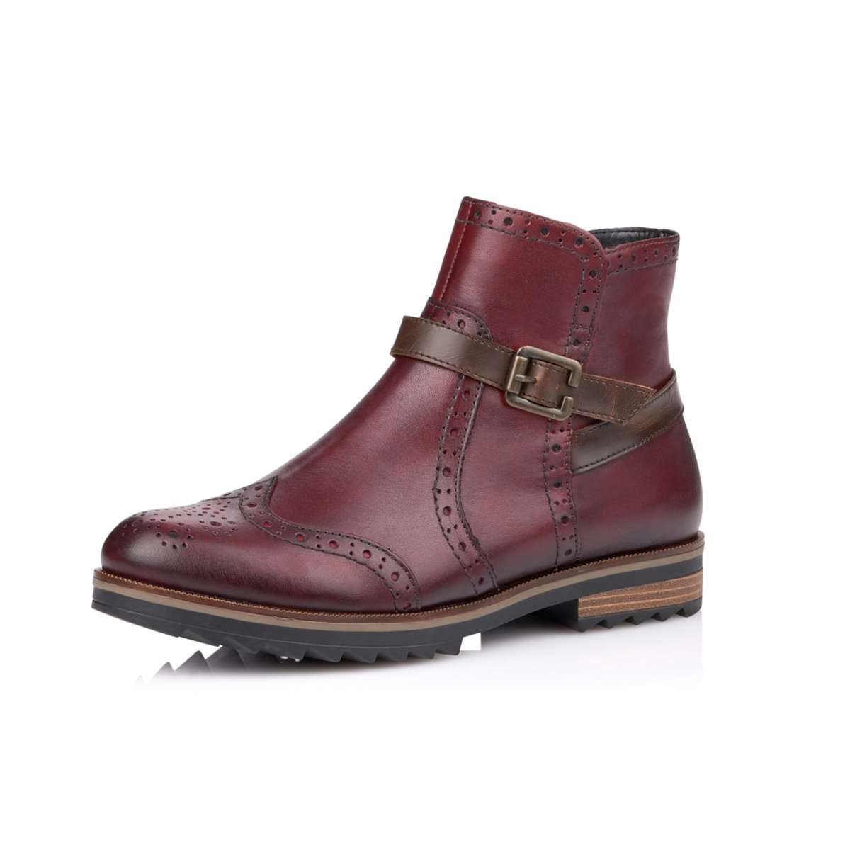 Zimní kotníkové boty z pravé kůže s povrchovou perforací, značky REMONTE (jedná se o vyšší řadu značky RIEKER).