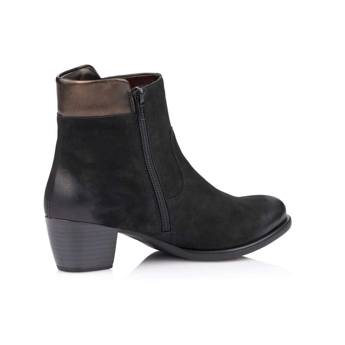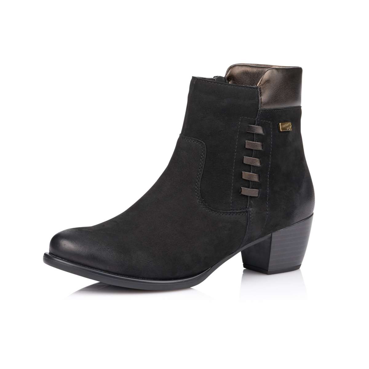 Kožený kotník černé barvy s ozdobnými hnědými prvky je nestárnoucí klasika, kterou musí mít v botníku každá žena. Nazutí Vám usnadní zip z vnitřní strany. Díky jedinečné funkční vrstvě Remonte TEX je obuv nepromokavá, ale přesto prodyšná.