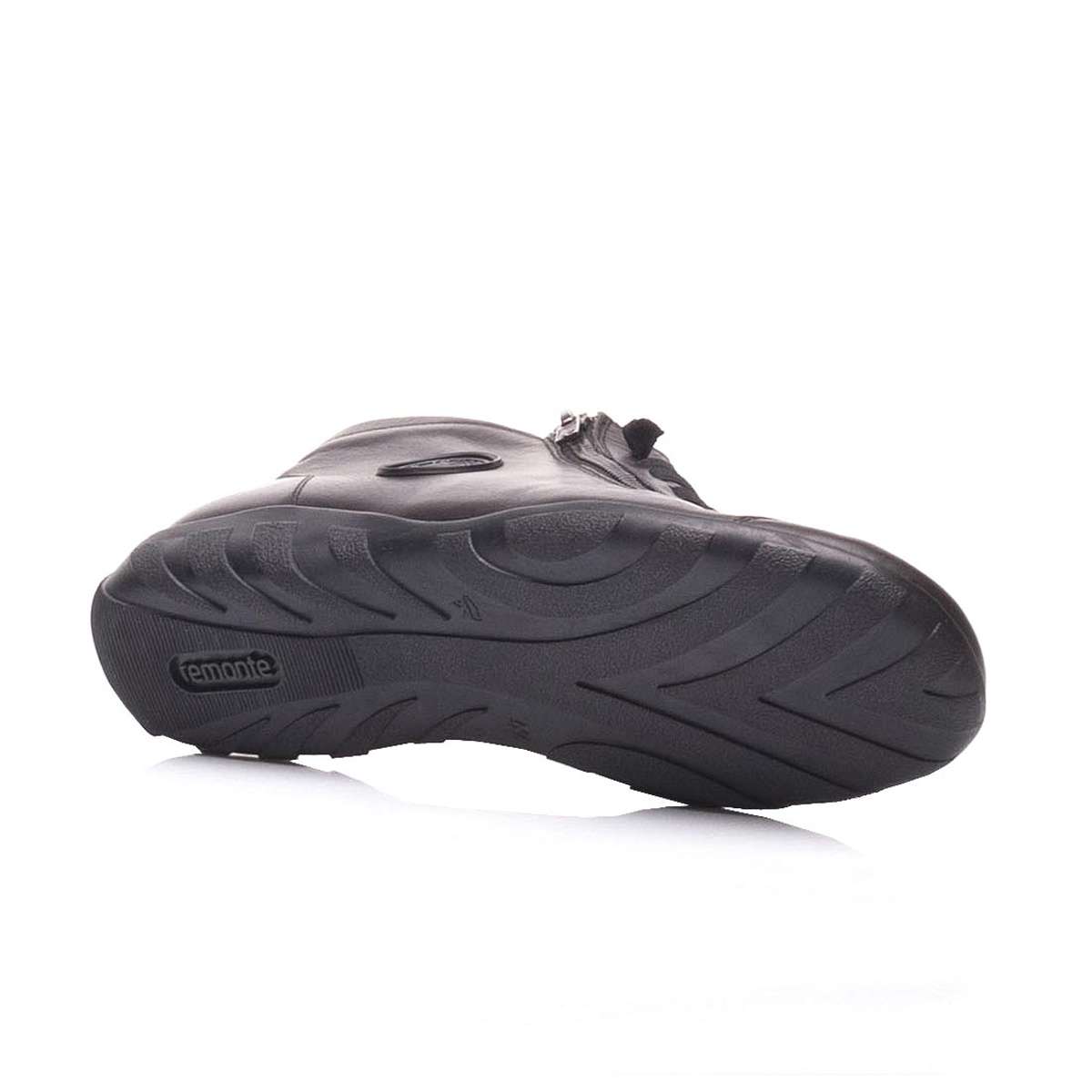 Lehce zateplená dámská kožená kotníková obuv v šedé barvě, značky REMONTE (jedná se o vyšší řadu značky RIEKER).