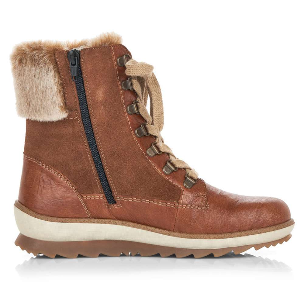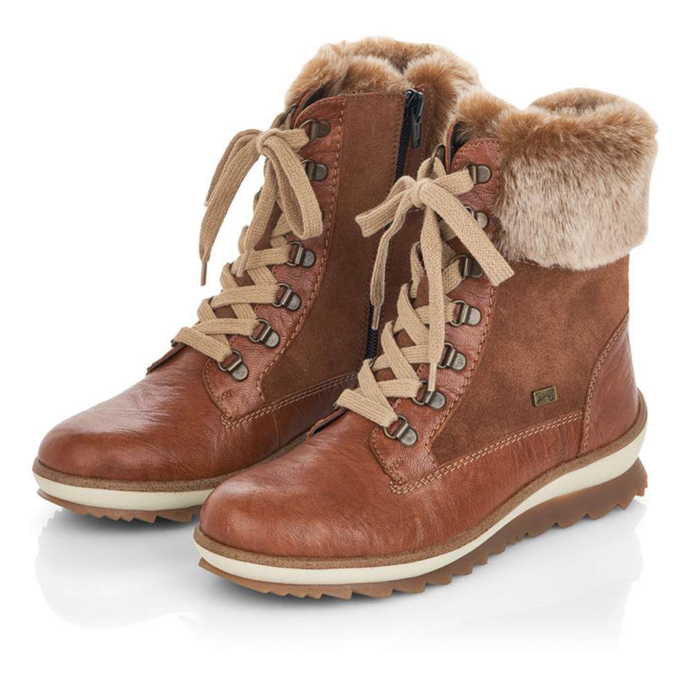 Dámská kotníková obuv hnědé barvy značky Rieker je vyrobena kombinací broušené a hladké kůže. Ozdobena je prošíváním a kožíškem ve vrchní části. Pro snadné nazouvání slouží funkční zip na vnitřní straně a díky šněrování si obuv přizpůsobíte přímo na svou nohu. Díky unikátní funkční vrstvě Remonte TEX je obuv nepromokavá, ale přesto prodyšná.
