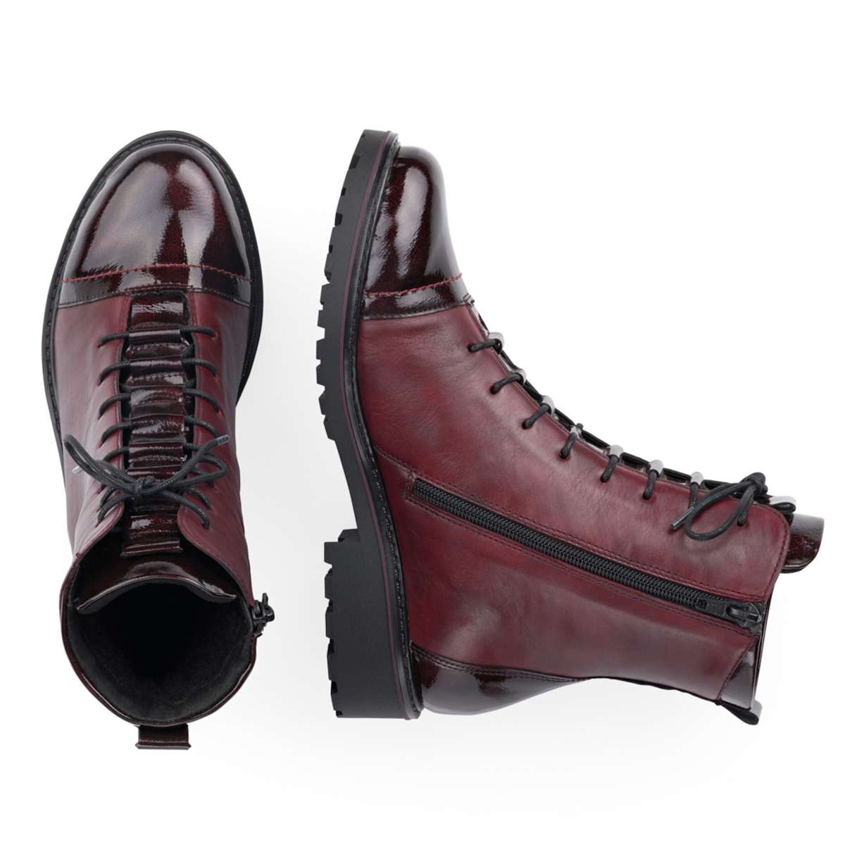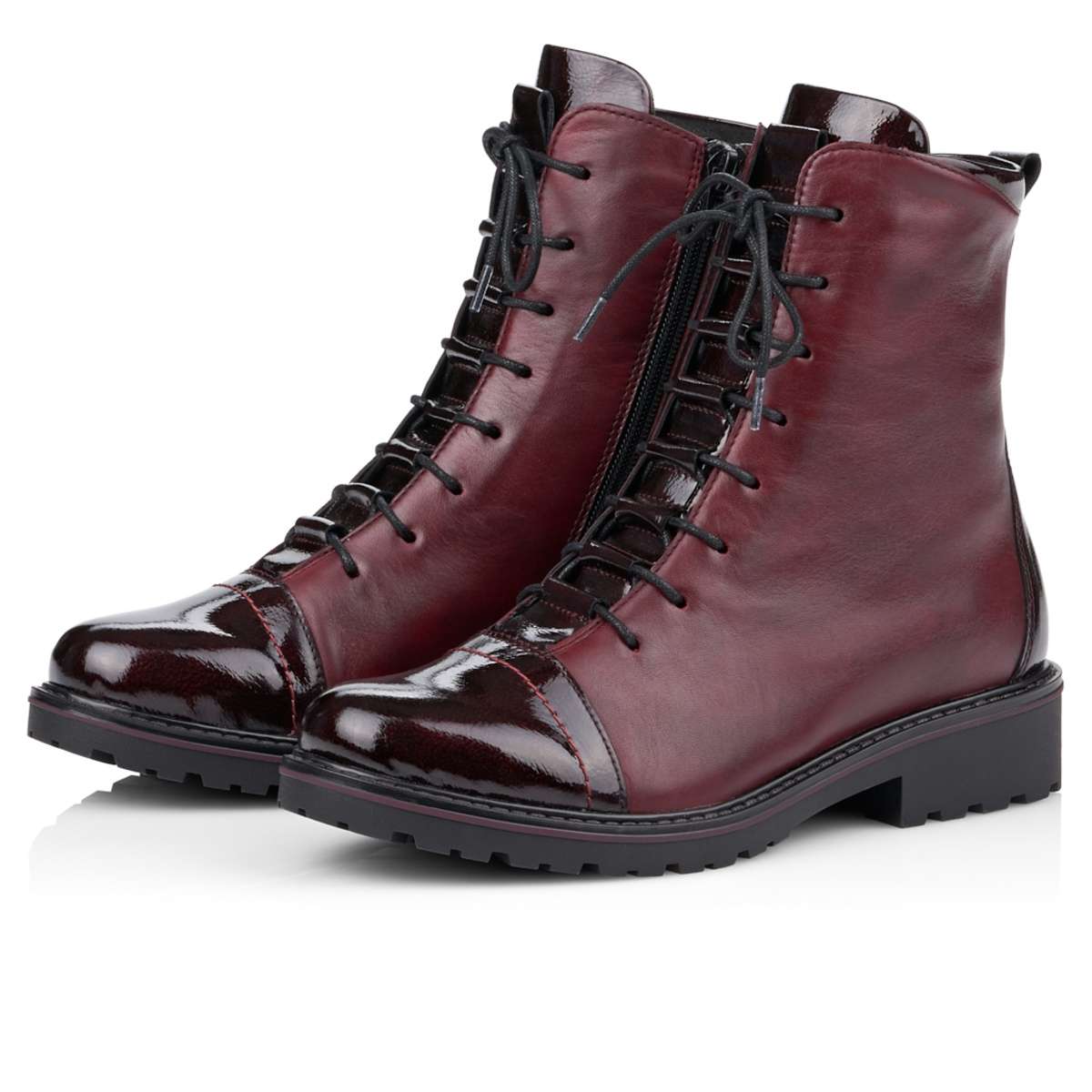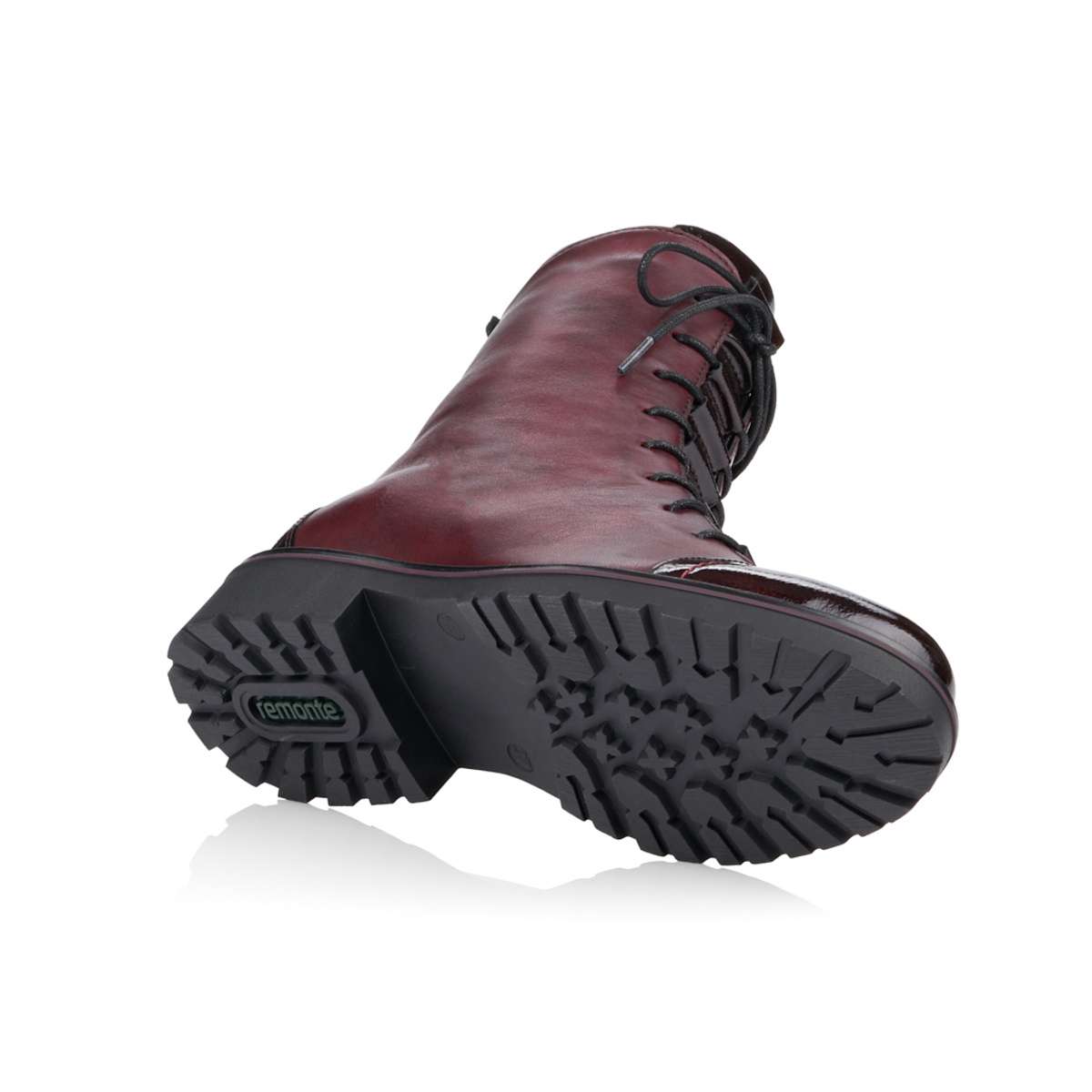 Obuv REMONTE – jedná se o vyšší řadu značky RIEKER, tato obuv se vyznačuje vynikající kombinací svrchních materiálů. Tento úžasný kotník je šitý z pravé kůže vínové barvy. Nepřehlédnutelný je díky černým tkaničkám, kterými si obuv přizpůsobíte přímo k Vaší noze. Lakované prvky doladí boty k dokonalosti při veškerých příležitostech a ke všem Vašim outfitům.