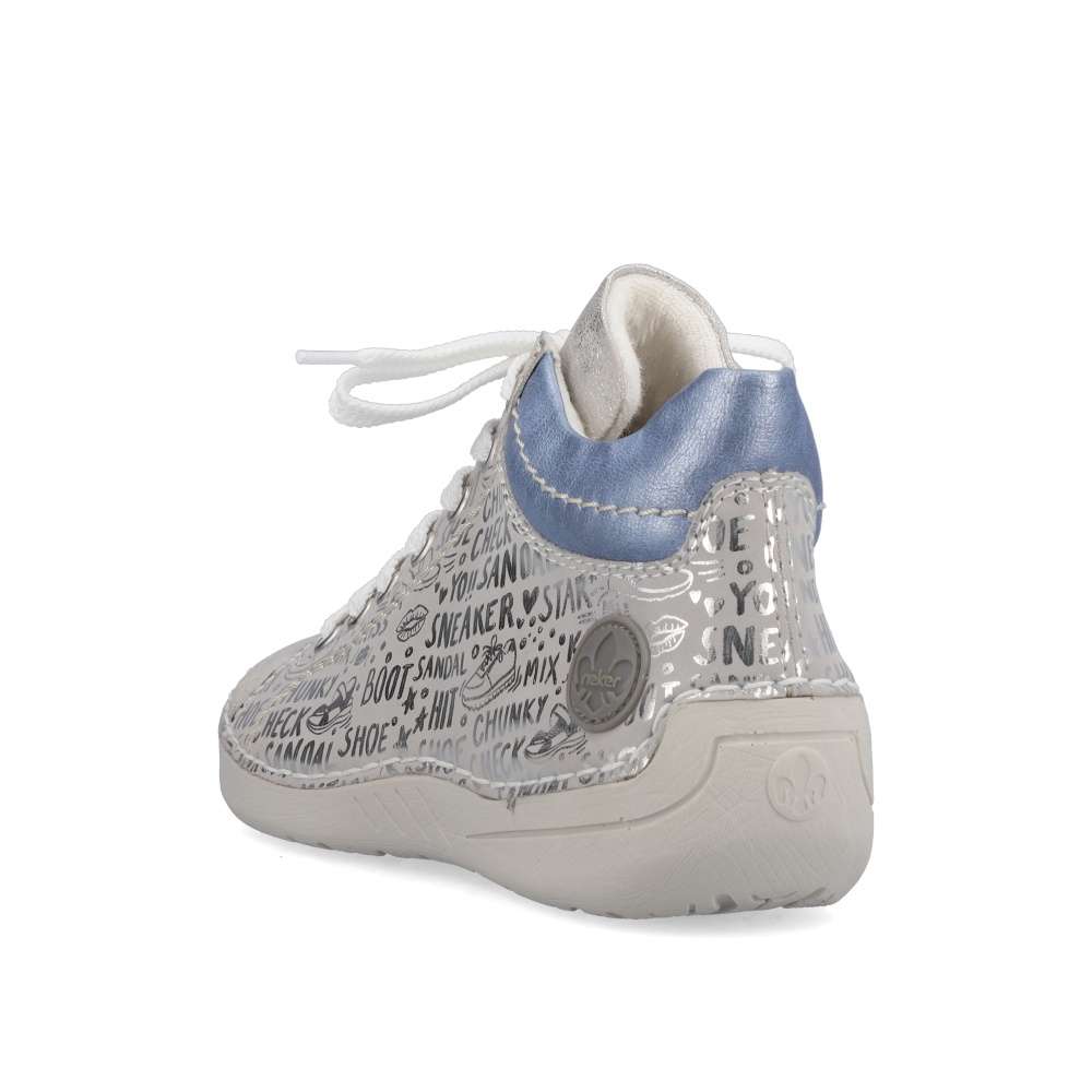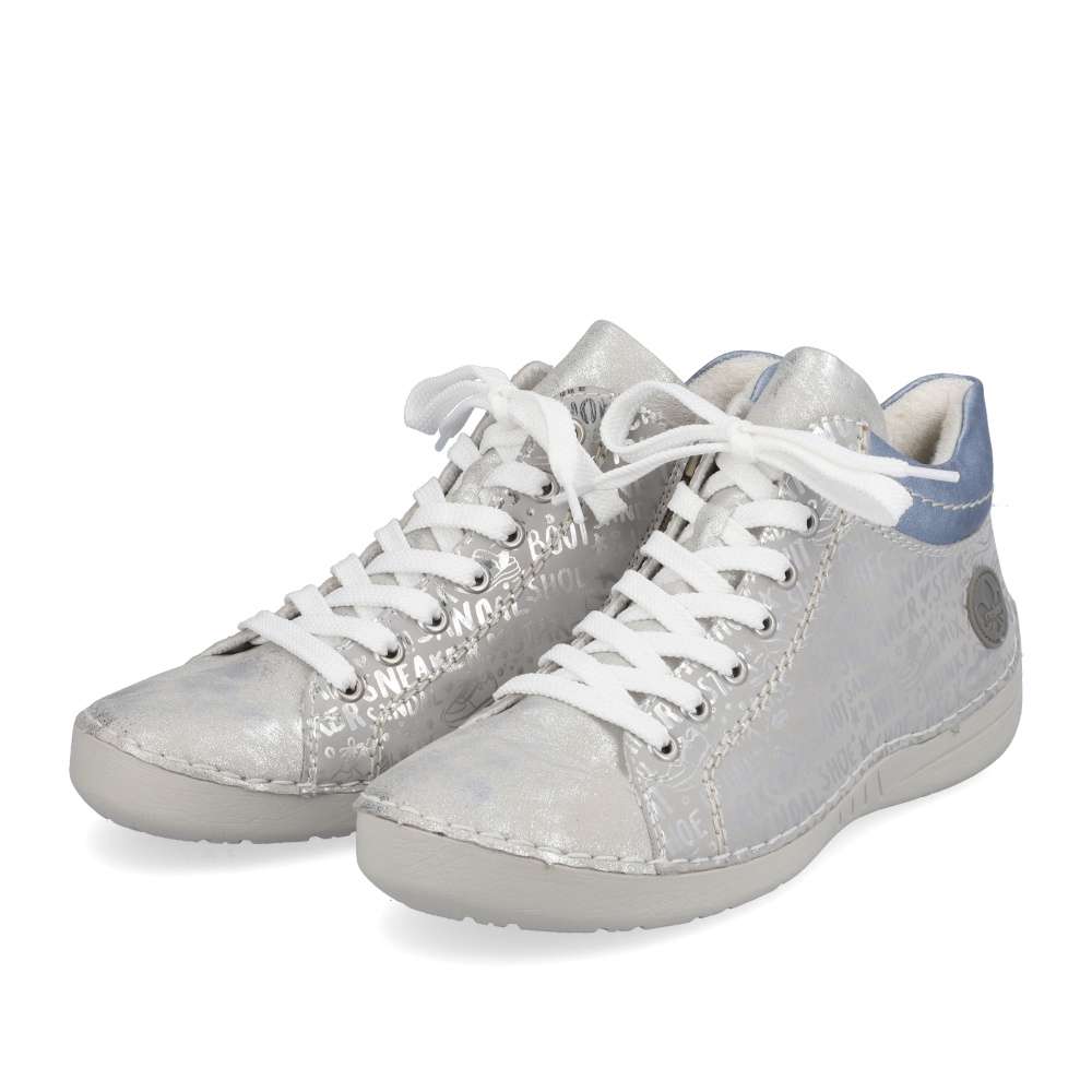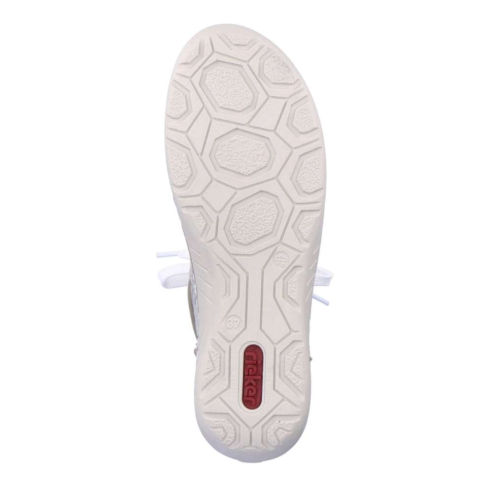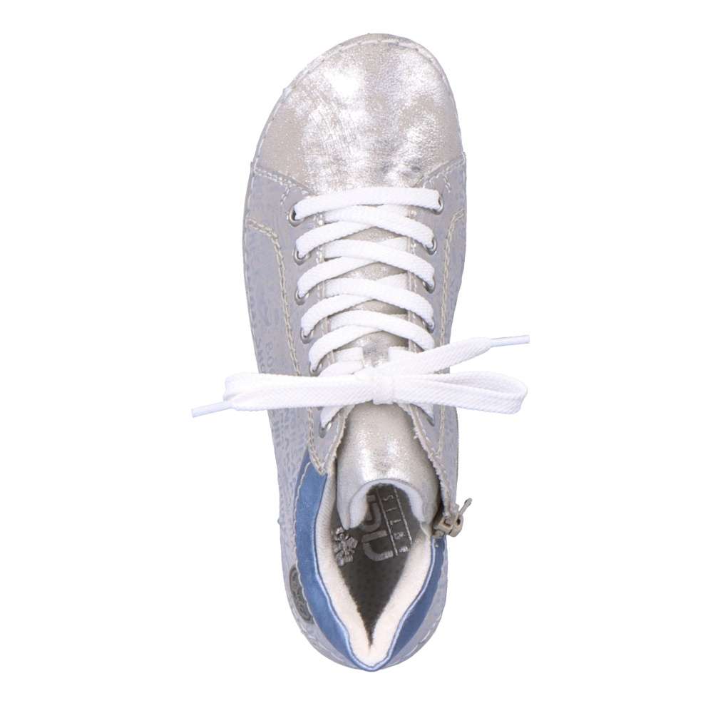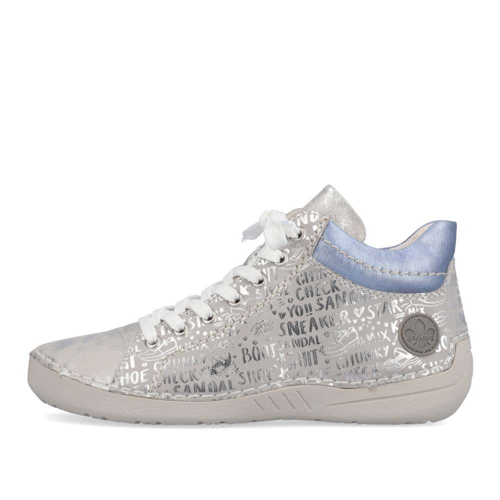 Tuto dámskou tenisku od značky Rieker si zamilujete na první pohled. Svršek zdobí lesklé nápisy, vkusné logo značky v oblasti paty a barevný prvek u kotníku. Díky kombinaci tkaniček a zipu Vám teniska skvěle padne a obouvání bude snadnější. S měkkou stélkou se budete cítit komfortně na každém kroku ať už vyrazíte za prací či zábavou. Kombinací bot s kabelkou z naší nabídky vznikne šmrncovní outfit. Technologie: Antistress – podešev je díky této technologii lehká, flexibilní, absorbuje nárazy při došlapu a snadno se přizpůsobí každé noze.