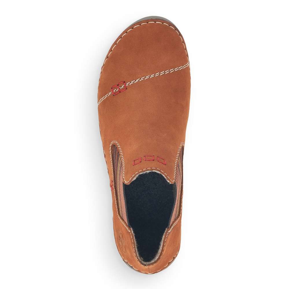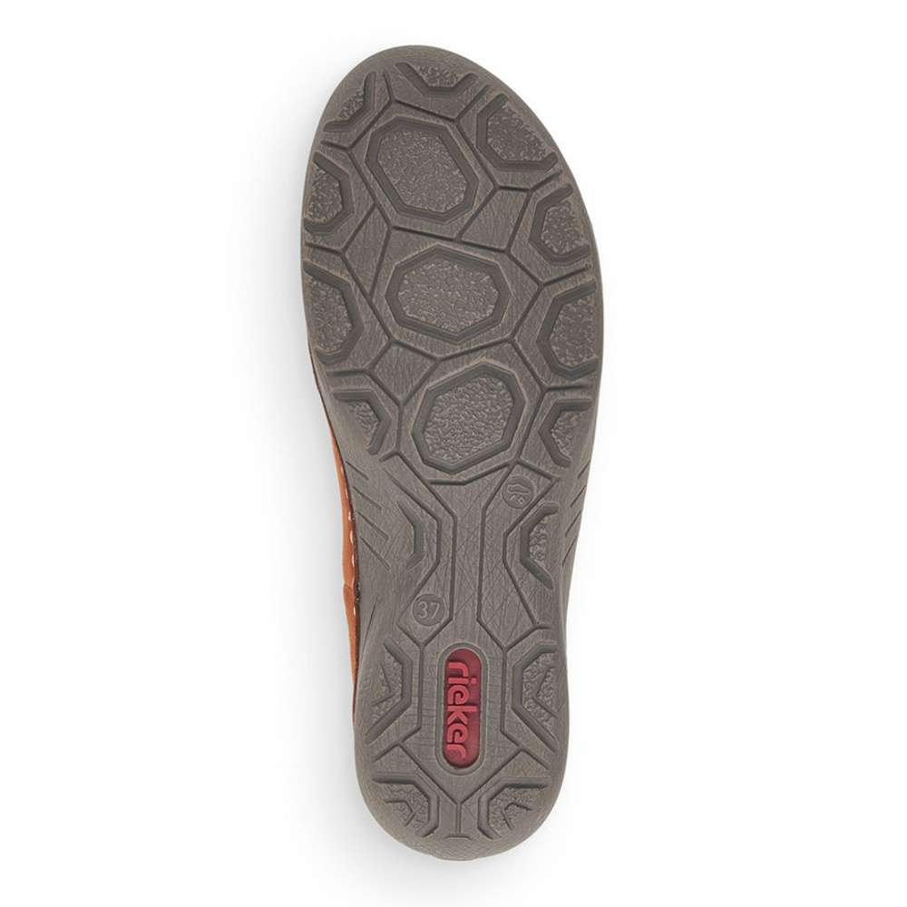 Kotníková obuv značky RIEKER s kontrastním béžovým prošitím a decentním logem značky v patní části Vás zaručeně osloví na první pohled. Pro snadné nazouvání slouží pružné gumičky vsazené po stranách. Můžete je využít na pochůzky městem či na kávu s kamarádkou.