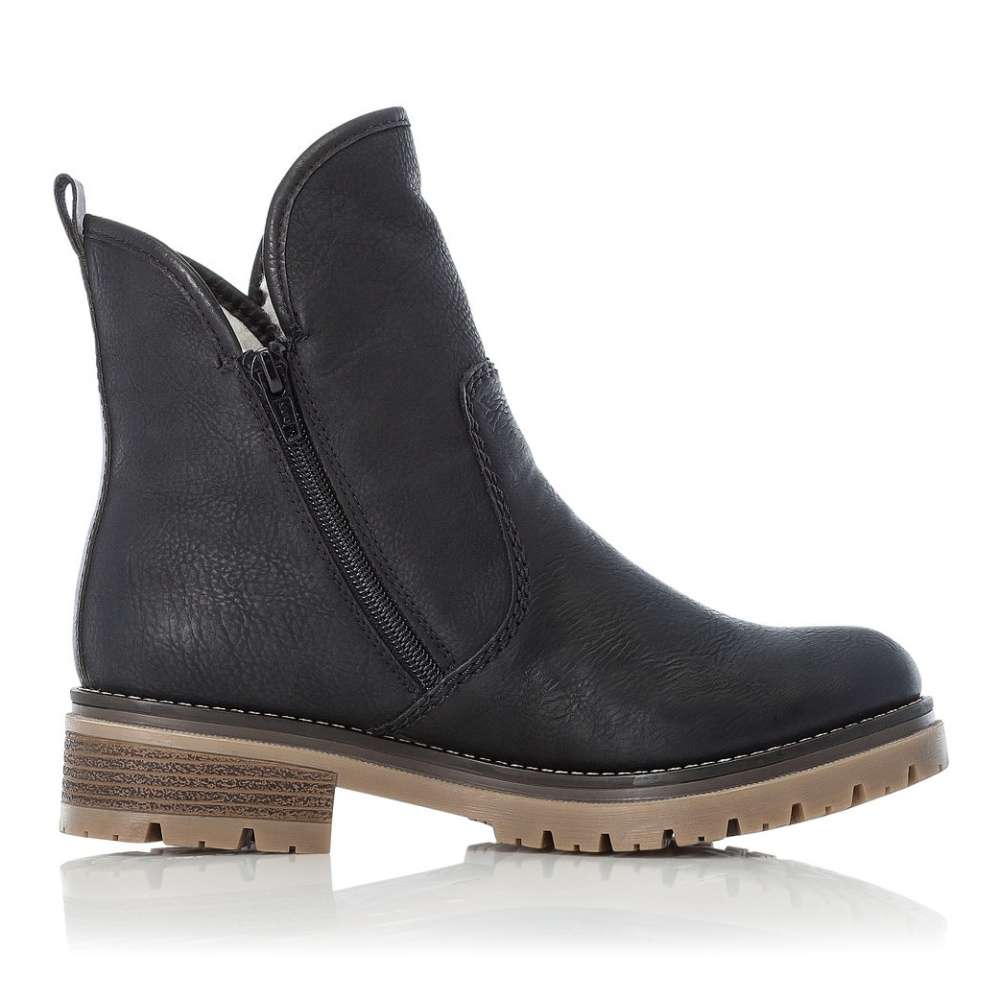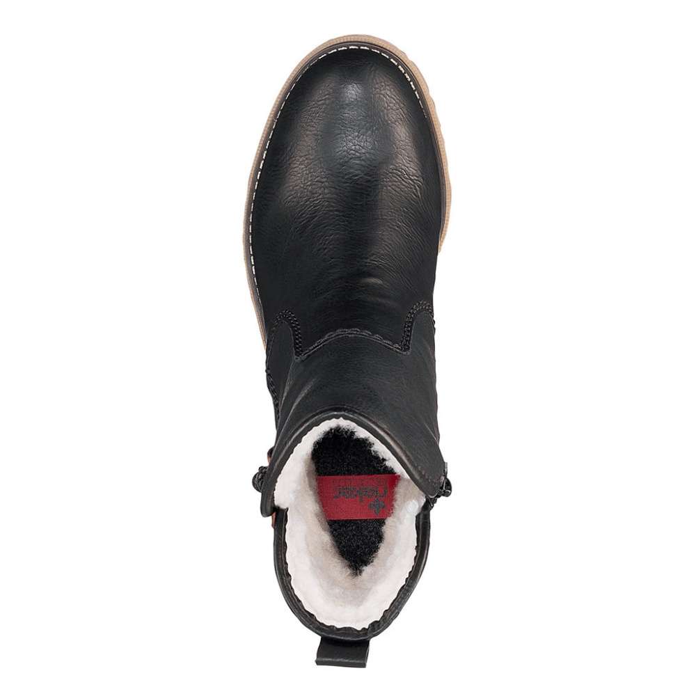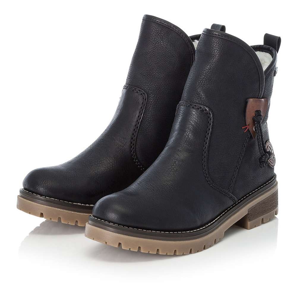 Krásná dámská kotníčková botička ozdobená prošíváním a šňůrkami značky RIEKER. Obuv zdobí všité logo značky RIEKER a funkční zip z vnitřní strany který Vám bude hezky sedět na noze. Pro Vaše pohodlí je stélka vyrobena z kvalitního materiálu a podšívka z hřejivého materiálu. K těmto skvostným botám si můžete vzít buď kalhoty či teplou bundičku a vyrazit s kamarádkami na kávu, nebo je můžete doplnit krásnou kabelkou z naší široké nabídky.
