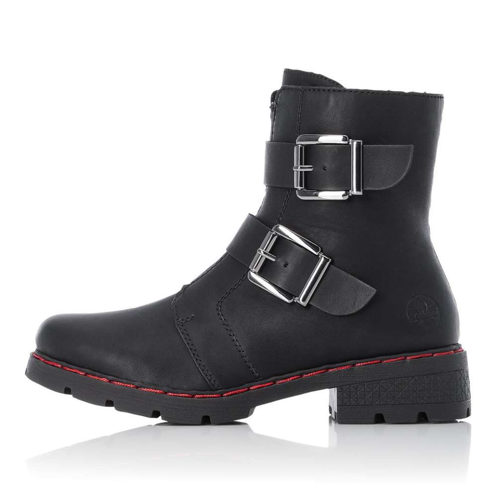 Unikátní vzhled tomuto hladkému kotníku značky RIEKER dodávají dva pásky přes nárt s velkými stříbrnými sponami. Snadné nazouvání Vám zajistí funkční zip na vnitřní straně. Obuv bude skvělá volba na procházce městem a dokonale doladí Vaše zimní outfity.
