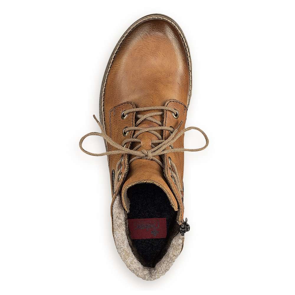 Procházky budou mnohem příjemnější s tímto krásným kotníkem v nádherné hnědé barvě. Dokonalost podtrhne jednoduchý svršek s logem značky RIEKER na straně a filcový materiál kolem horního okraje. Šněrováním si je upravíte dle svých potřeb, zip zase pomůže k rychlému nazutí a vyzutí. Teplá podšívka se postará o pocit tepla v chladných dnech a měkká stélka o pohodlí na každém kroku. Tento model užijete ke všem volnočasovým i pracovním aktivitám.