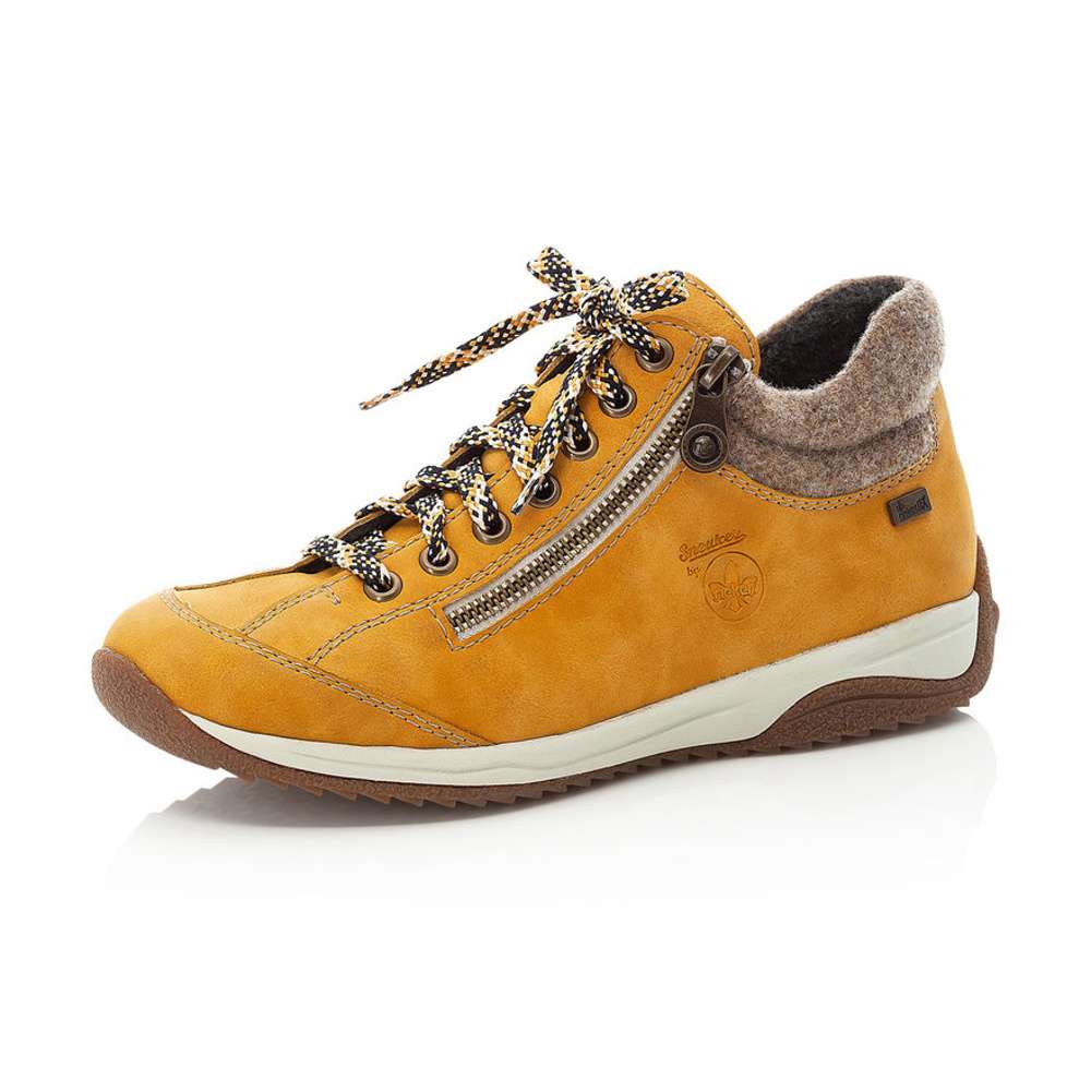 Jednoduchá dámská kotníková obuv žluté barvy, značky RIEKER.