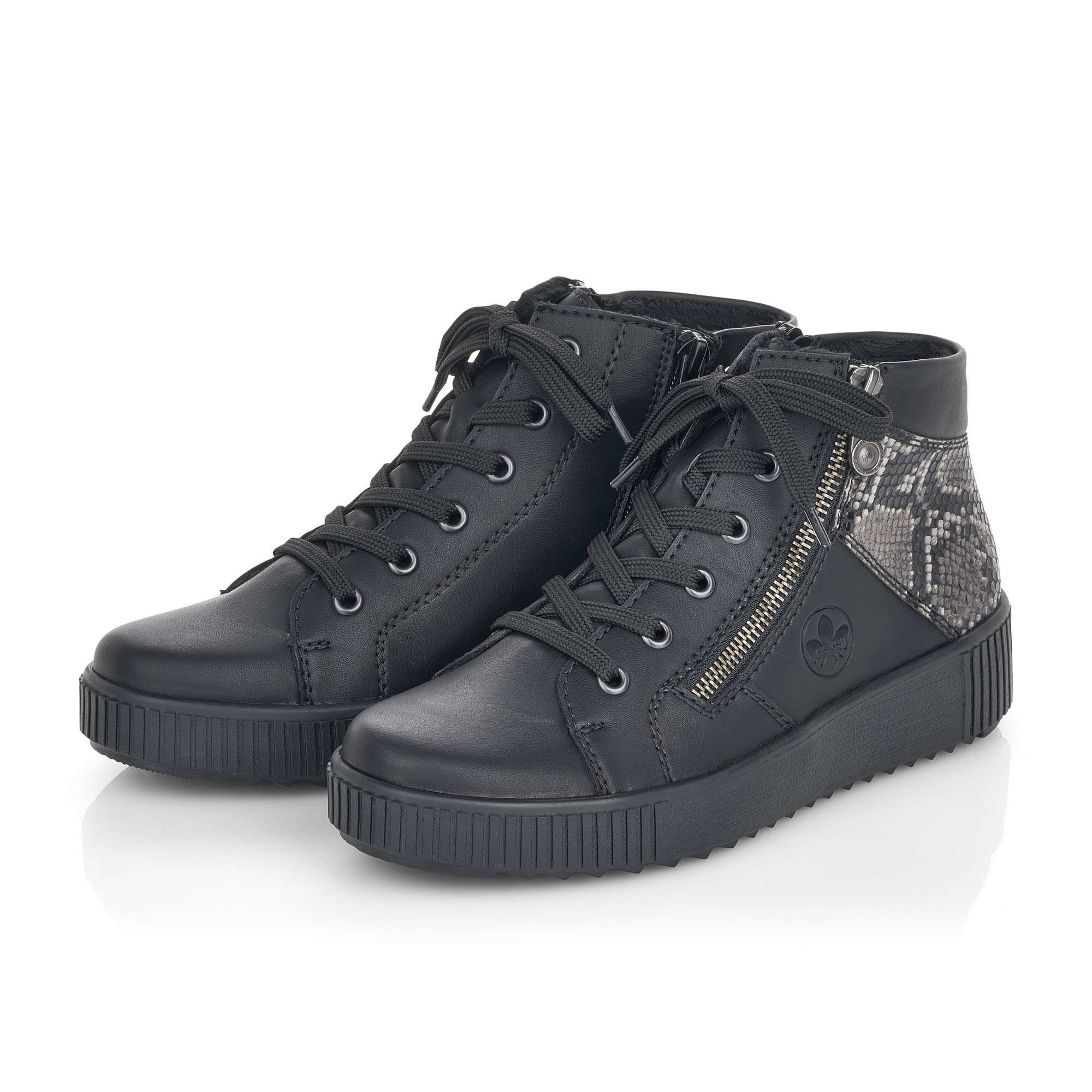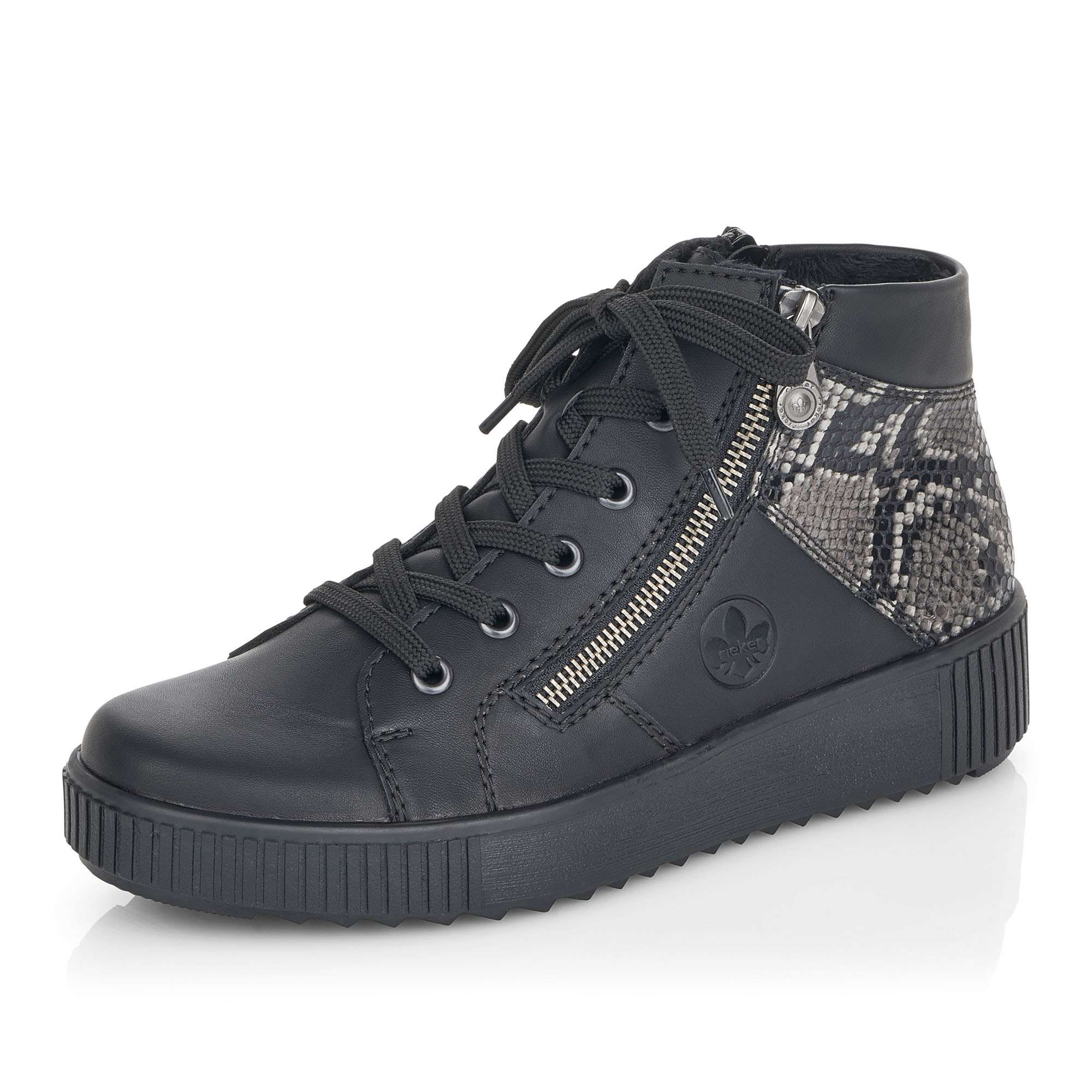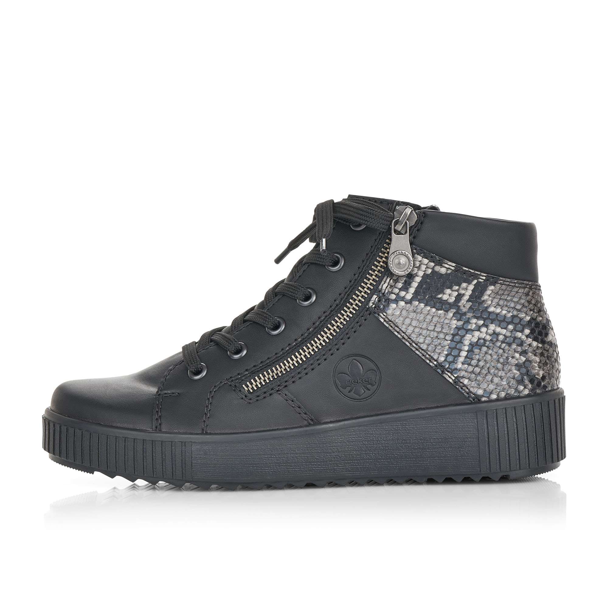 Dámské kotníkové boty značky RIEKER s vysokou podešví, vás zaujmou na první pohled.