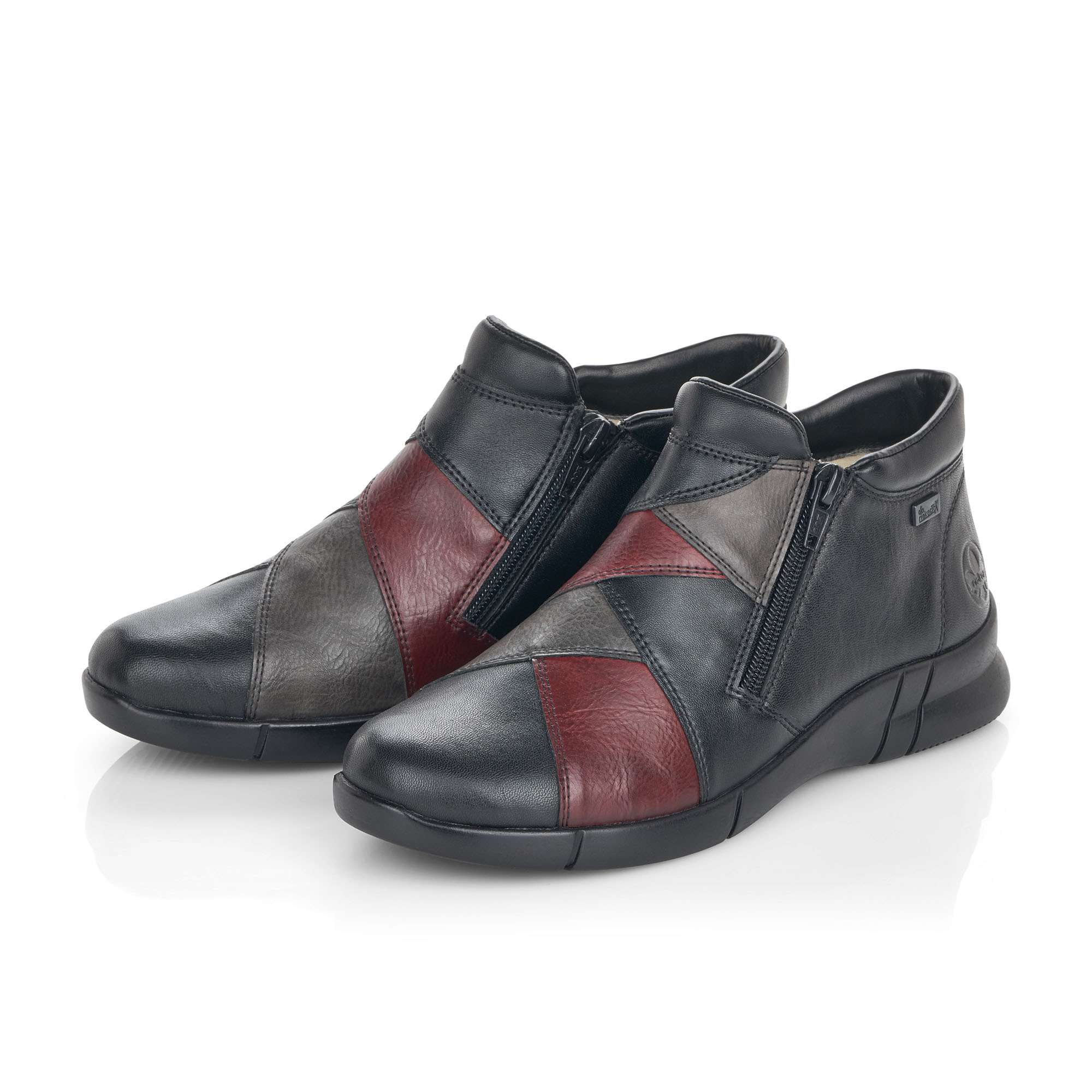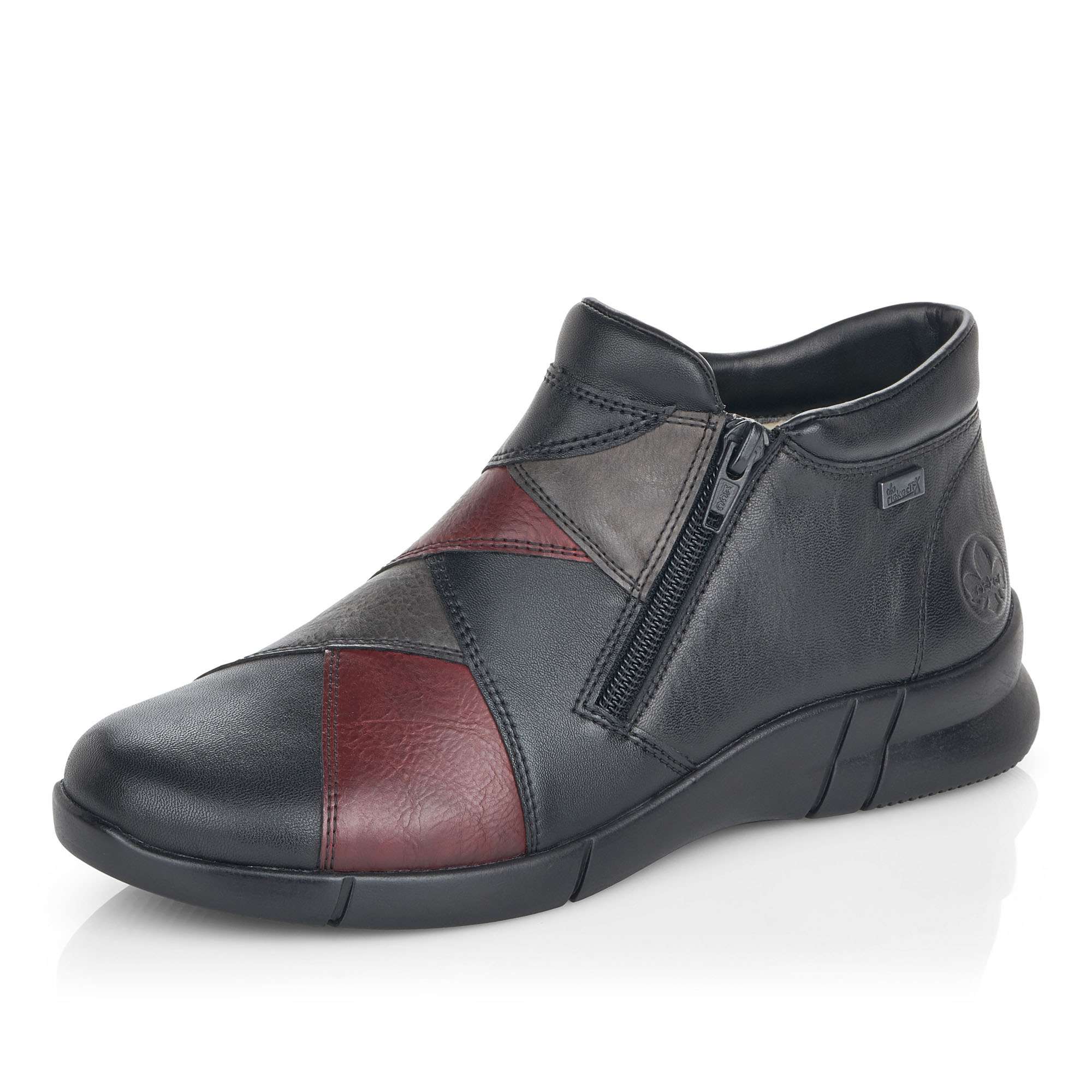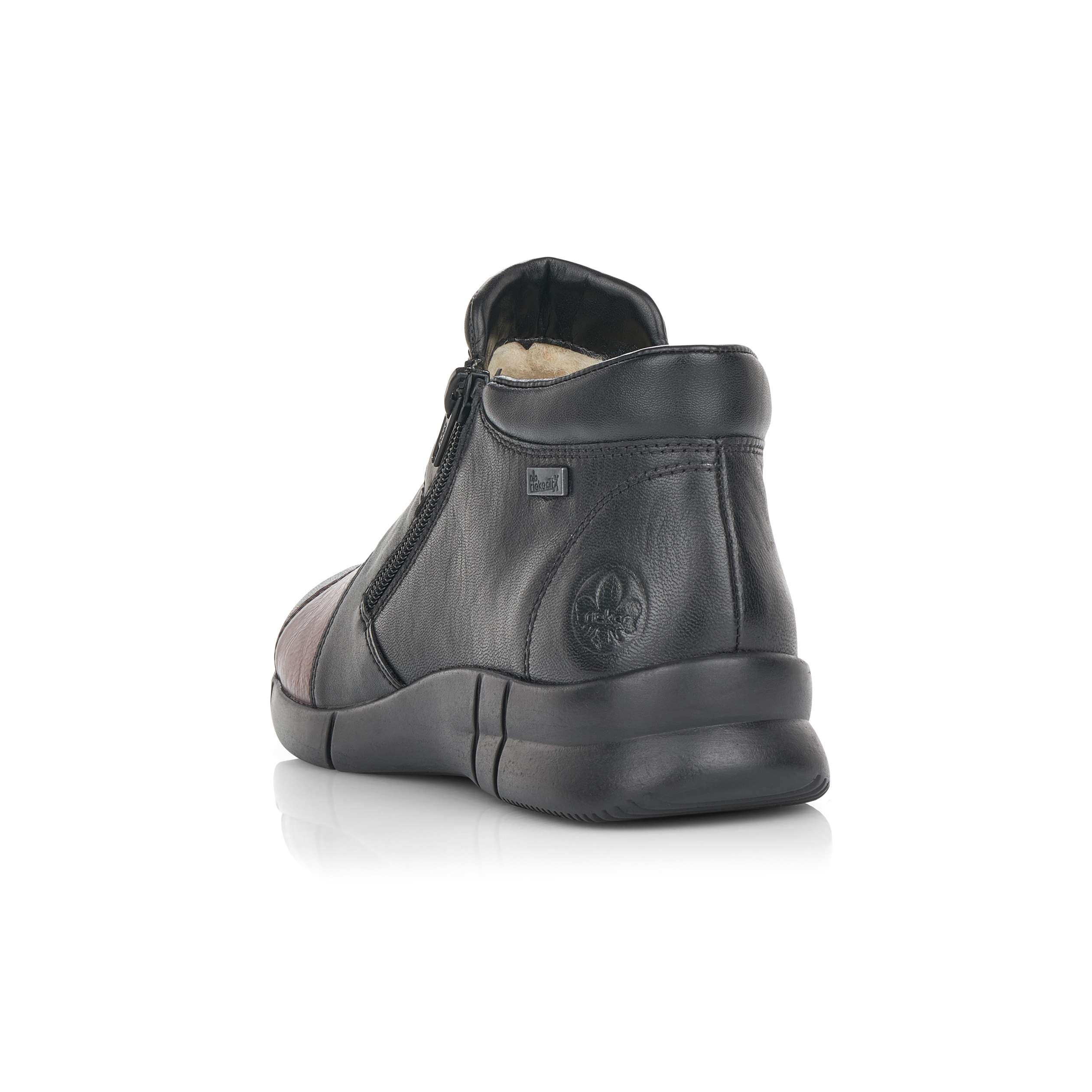 Svršek ovládá vybraná kombinace barev černé, červené a šedé. Podšívku, která je z vlny oceníte při chladném zimním počasí. Postranní zipy Vám pomohou při obutí a funkční vrstva RiekerTex zajistí nepromokavost a prodyšnost.