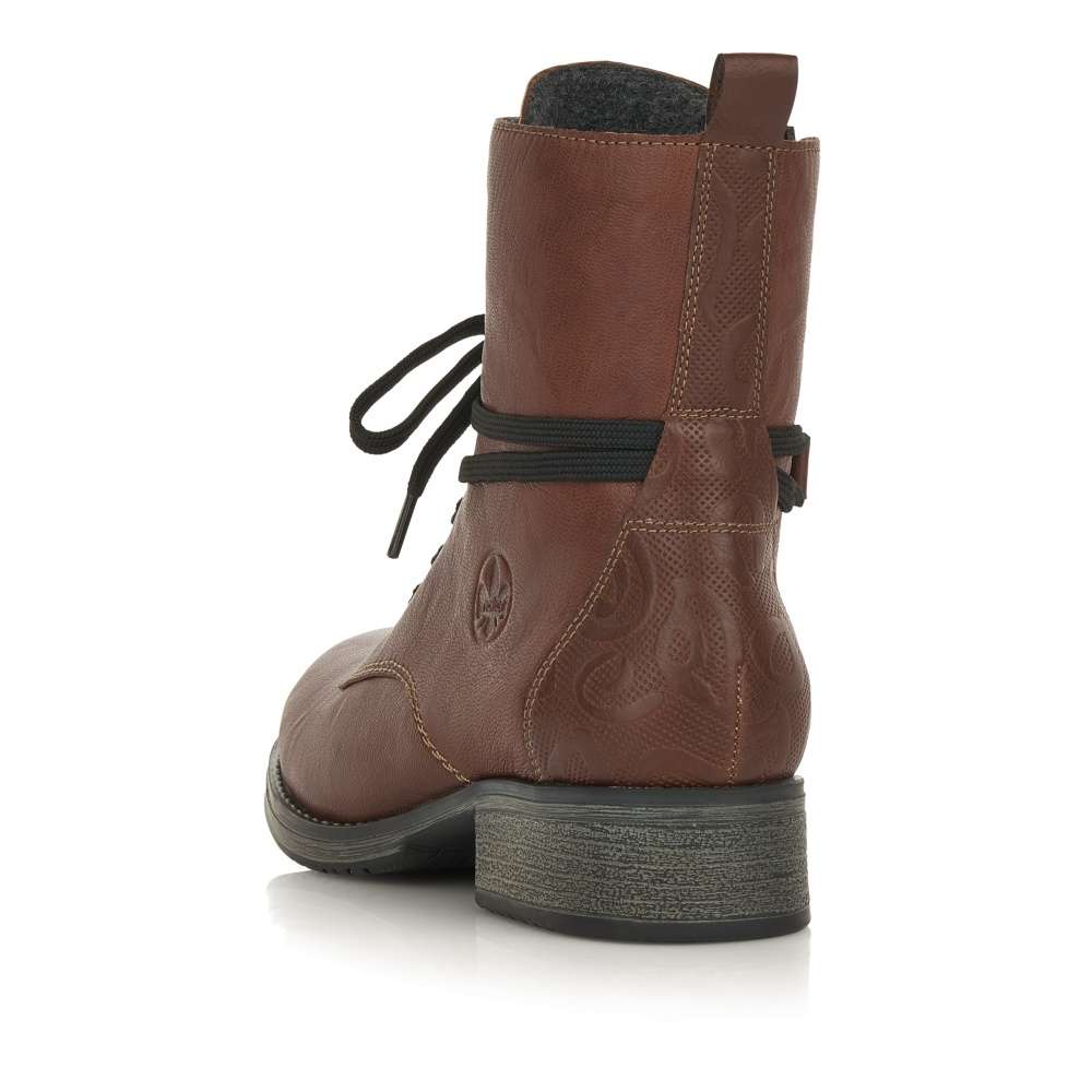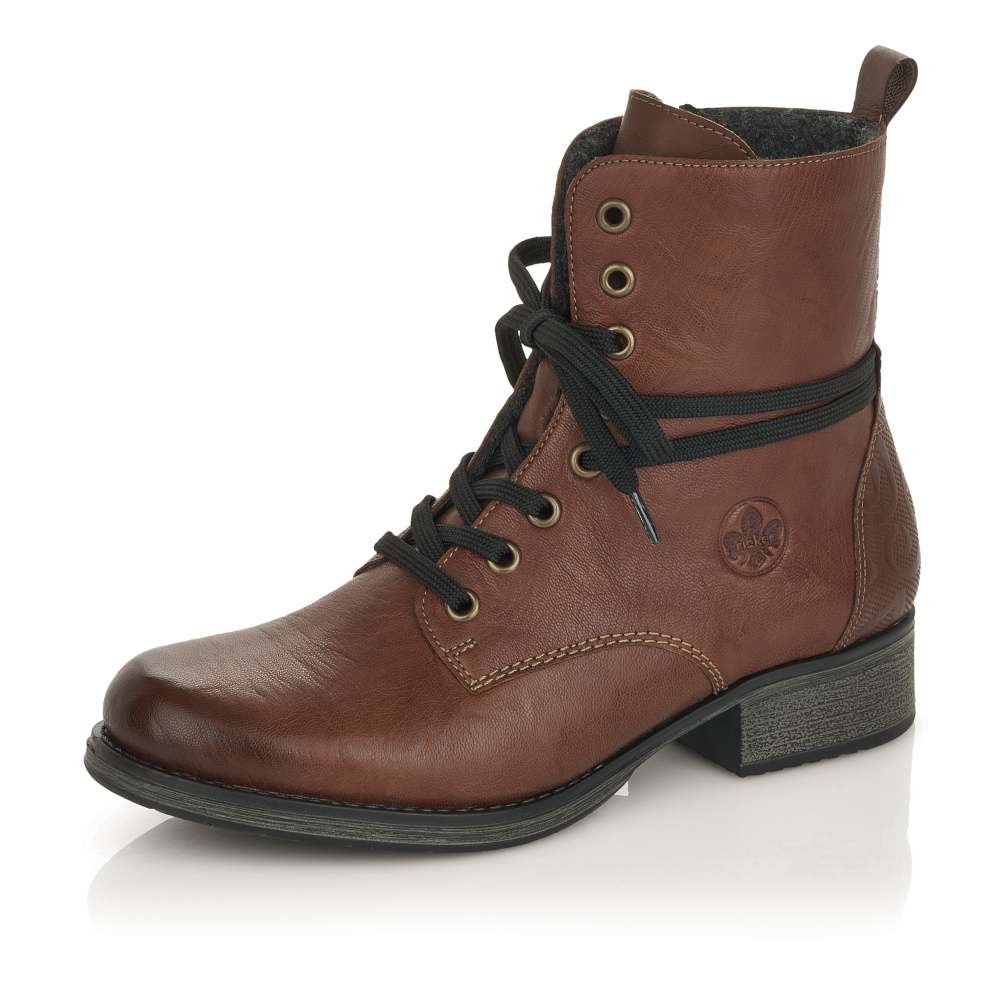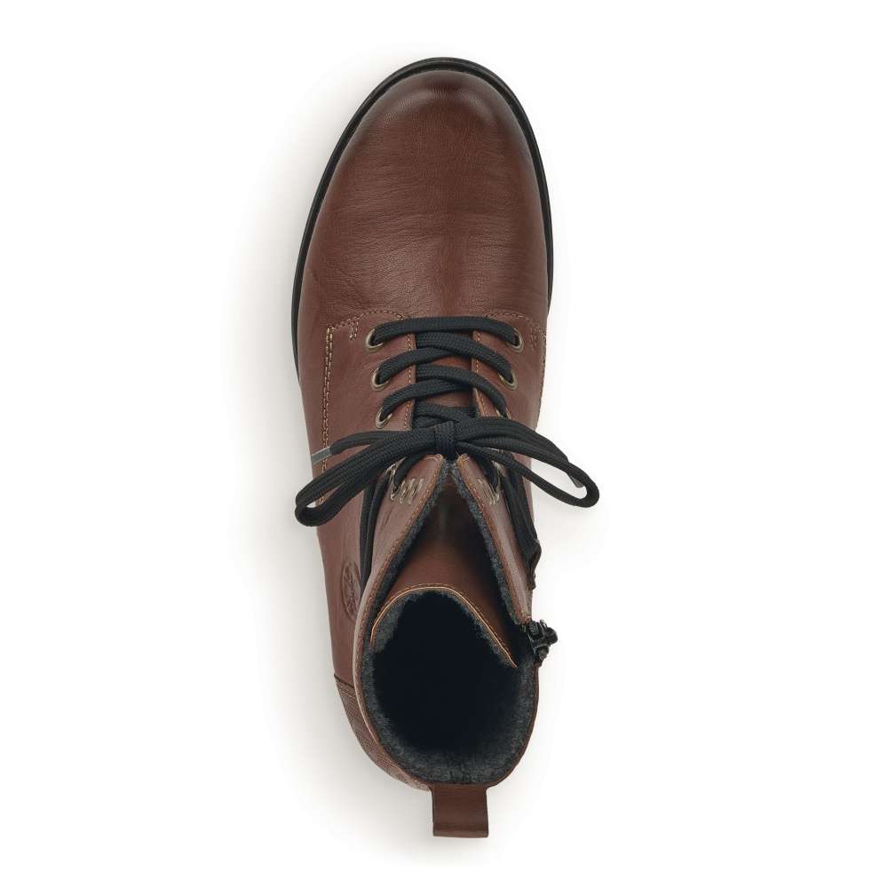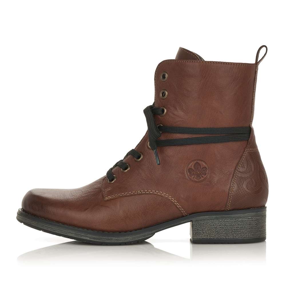 Tato dámská kotníková obuv Vám dodá pocit pohodlí během celého dne. Kožený svršek v nádherné hnědé barvě je zdoben černými tkaničkami, tlačeným vzorem v patě a elegantním šitím. Na vnitřní straně je pak funkční zip pro snadné obutí a šněrováním si je upravíte dle svých potřeb. Tato obuv krásně doplní Vaše zimní outfity jak do města, tak i na procházku přírodou.