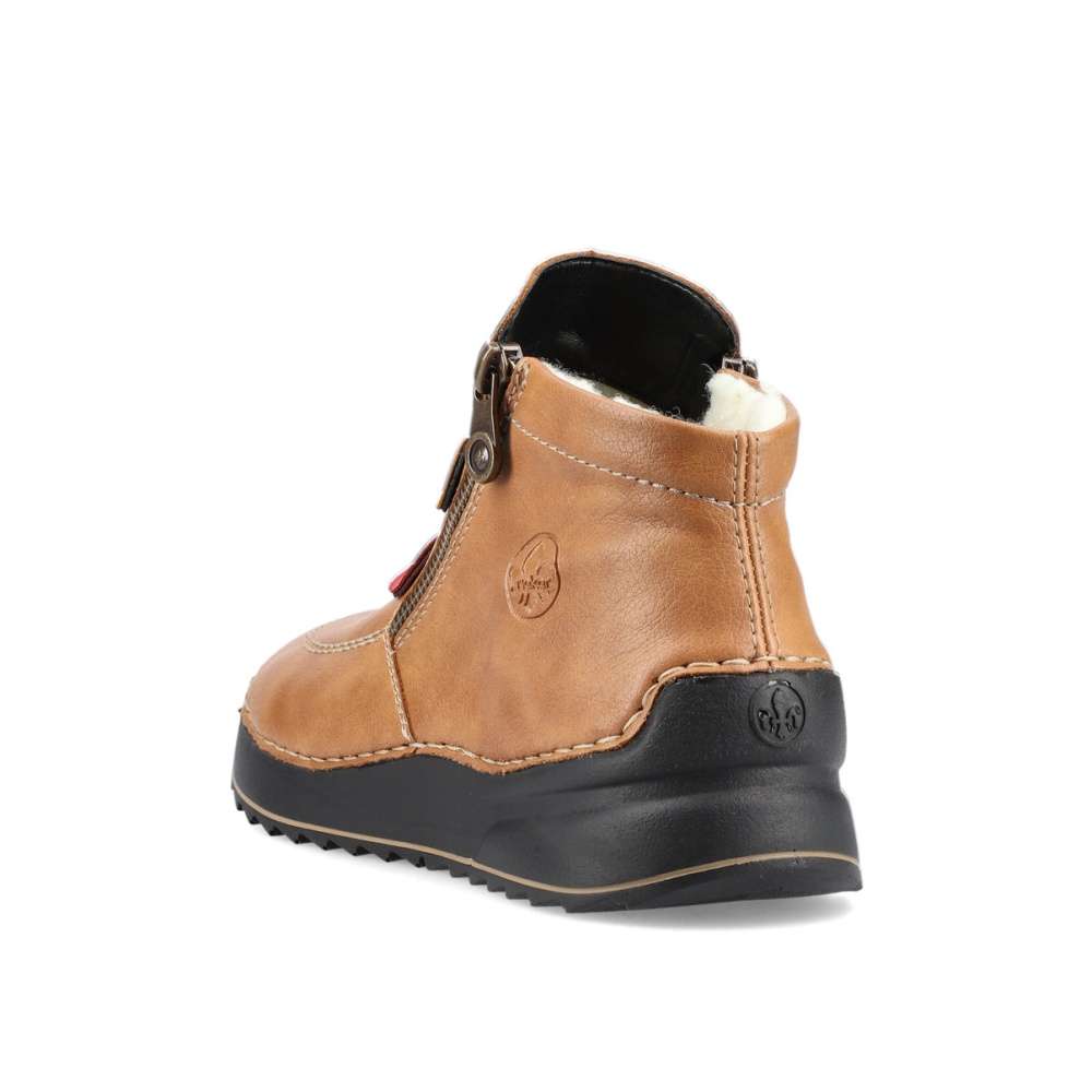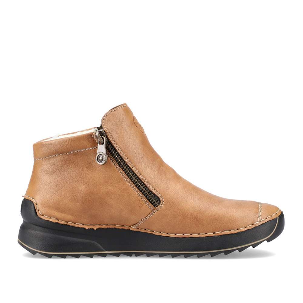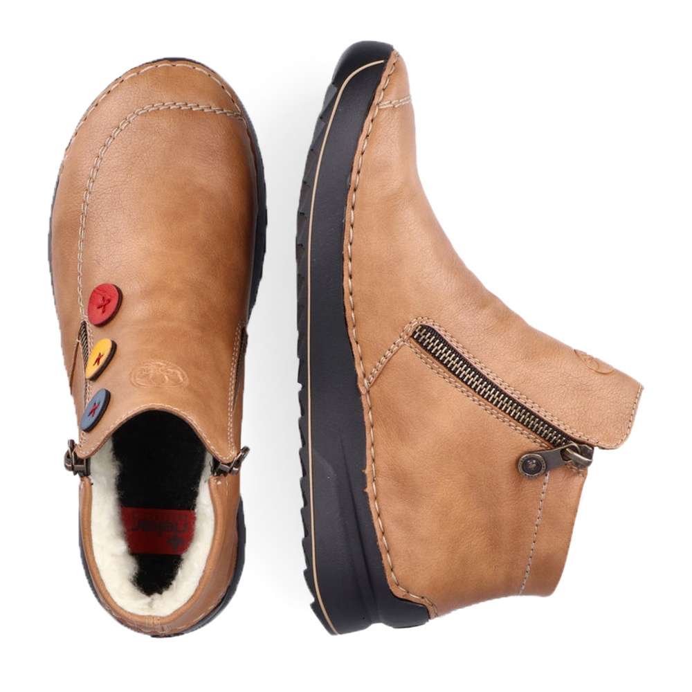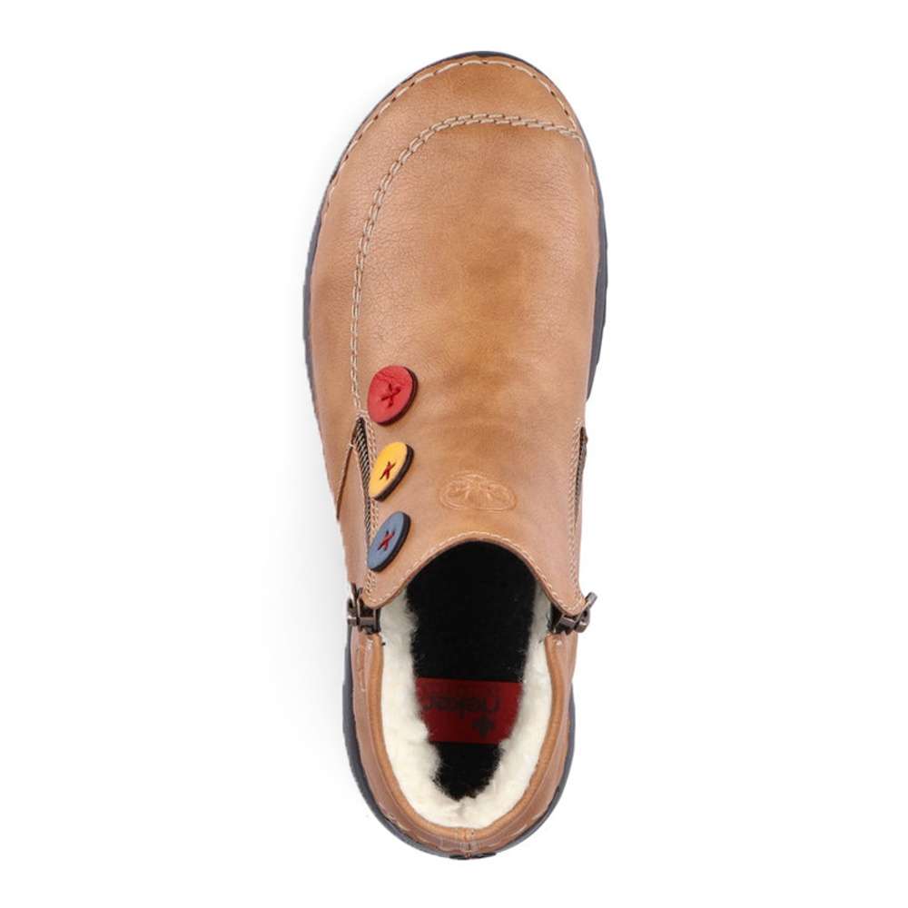 Každý podzimní či jarní den bude pro Vás pohádkou s těmito nízkými kotníky. Barevné prvky, elegantní šití a logo Rieker na patě i jazyku ozdobí hnědý svršek. Po stranách jsou funkční zipy pro snadné obutí i přizpůsobení k Vaší noze. Boty jsou zateplené teplou podšívkou.