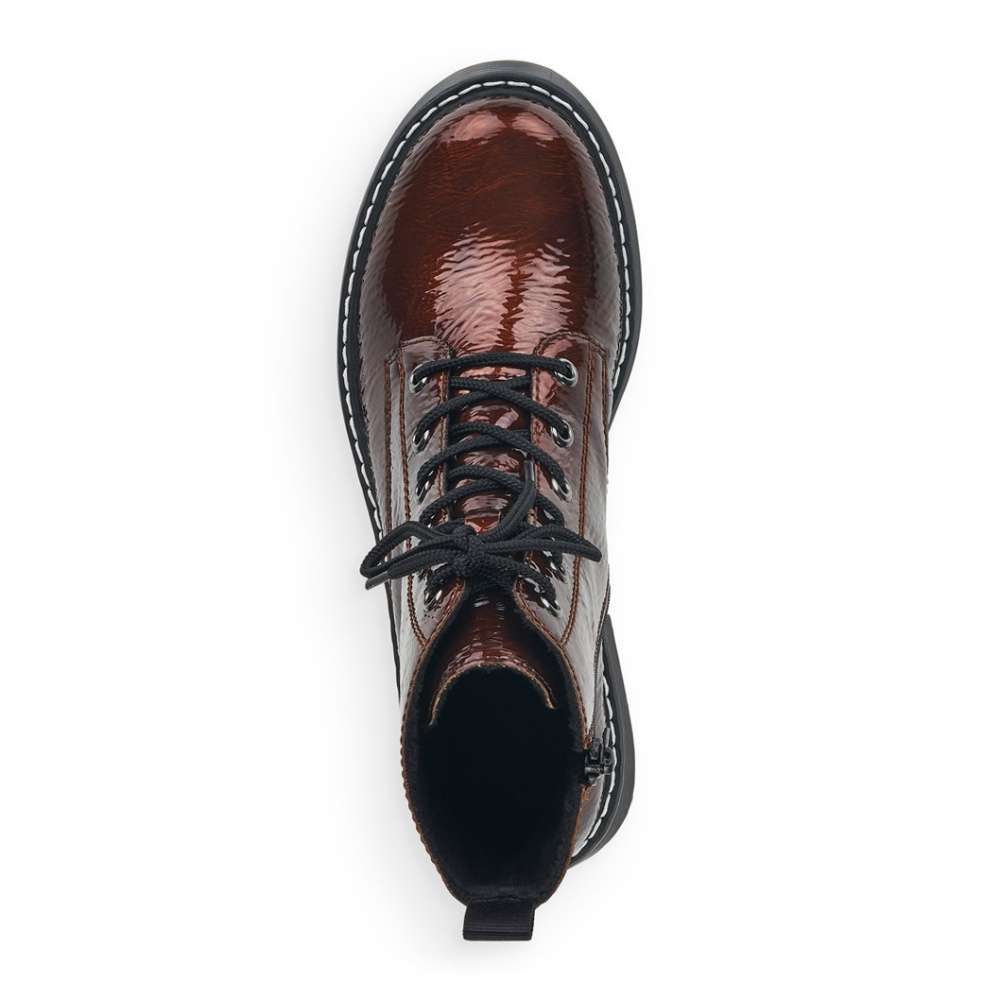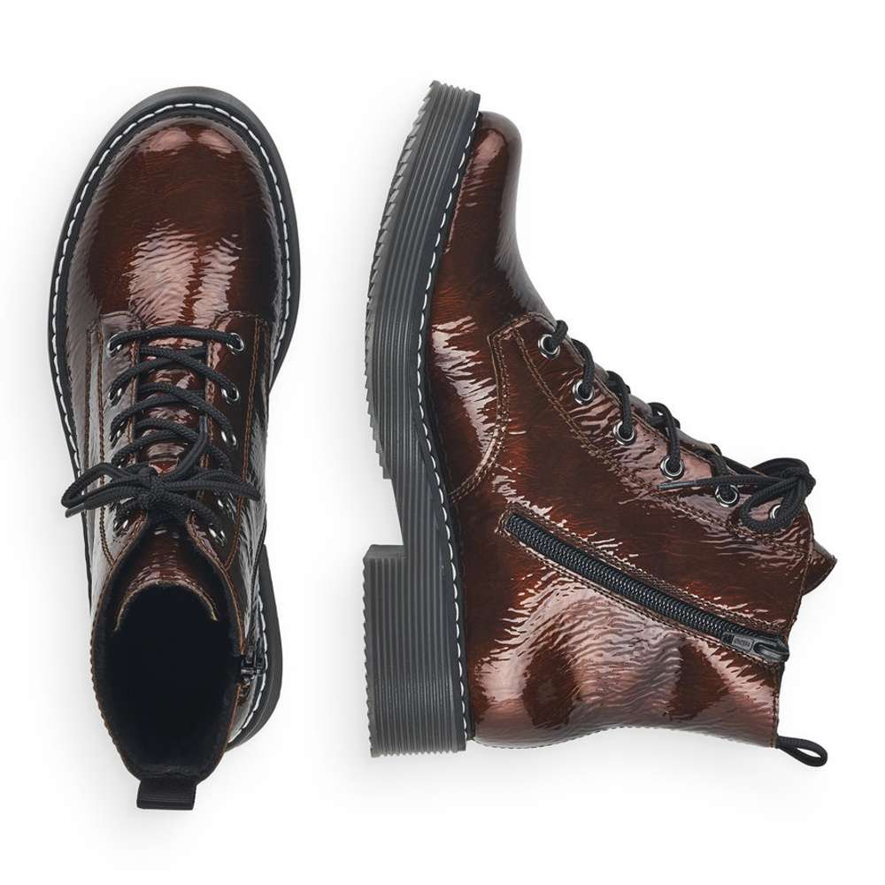 Lesklý svršek měděné barvy je ozdoben šitím, vytlačeným logem značky a kovovým uchycením tkaniček. Snadné nazouvání Vám umožní funkční zip na vnitřní straně a dokonale si obuv přizpůsobíte šněrováním.