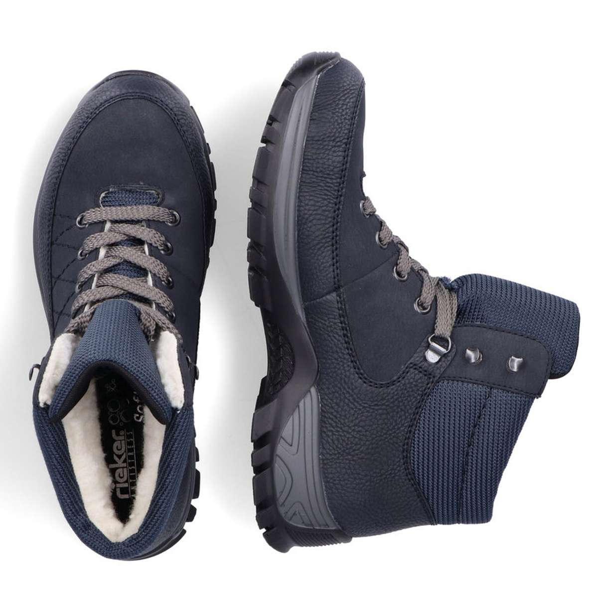 Kombinace tmavé barvy na svršku, vyjímatelné paměťové stélky a technologie Rieker-tex Vám zaručí pohodlí a jistotu kdykoliv je obujete. Šněrováním si obuv upravíte dle svých představ .