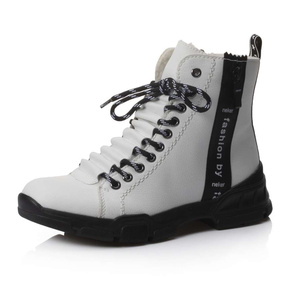 Je výrazná už svou bílou barvičkou, dále tkaničkami s nápisem RIEKER a kovovými kroužky, kterými tyto tkaničky provlékáte. Pro snadné obutí poslouží i zip z vnitřní strany a obuv si tak upravíte dle svých představ.