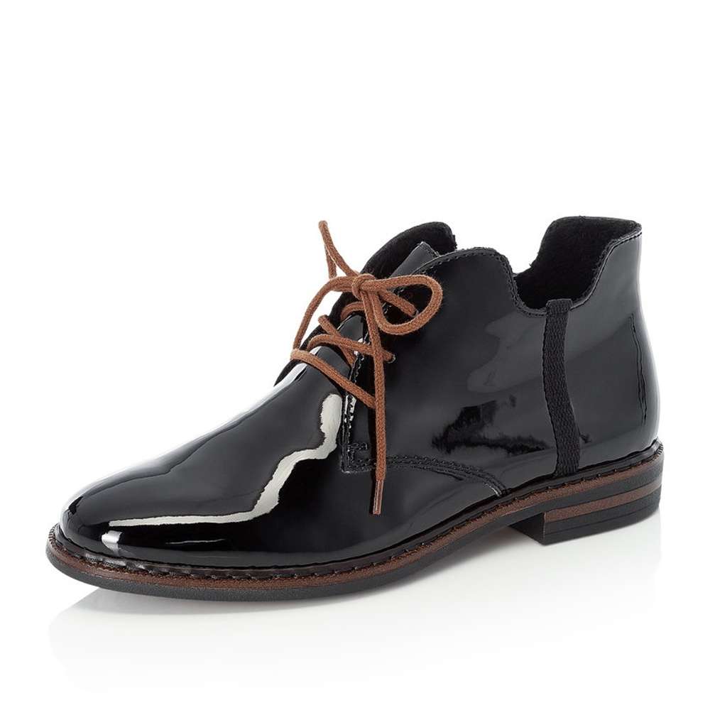 Dámské polobotky klasického stylu užijete ke všem příležitostem. Mají lakovaný svršek a užší špici. Zdobené jsou hnědými tkaničkami, semišovým pruhem na straně a hnědými proužky kolem podešve i na podpatku. Šněrováním si je upravíte dle svých potřeb.