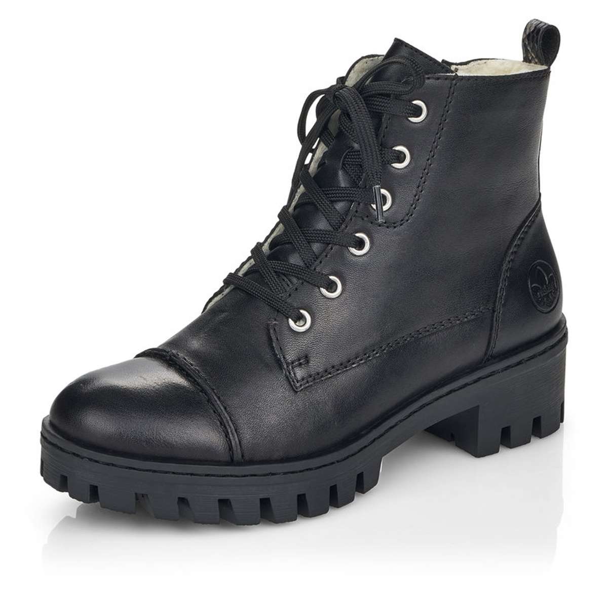 Elegantní kožený model v černé barvě s teplou podšívkou Vás zaujme na první pohled. Hladký svršek je doplněn jednoduchým šitím a kovovými kroužky na tkaničky. Vnitřní funkční zip a poutko v patě využijete při obutí či vyzutí.