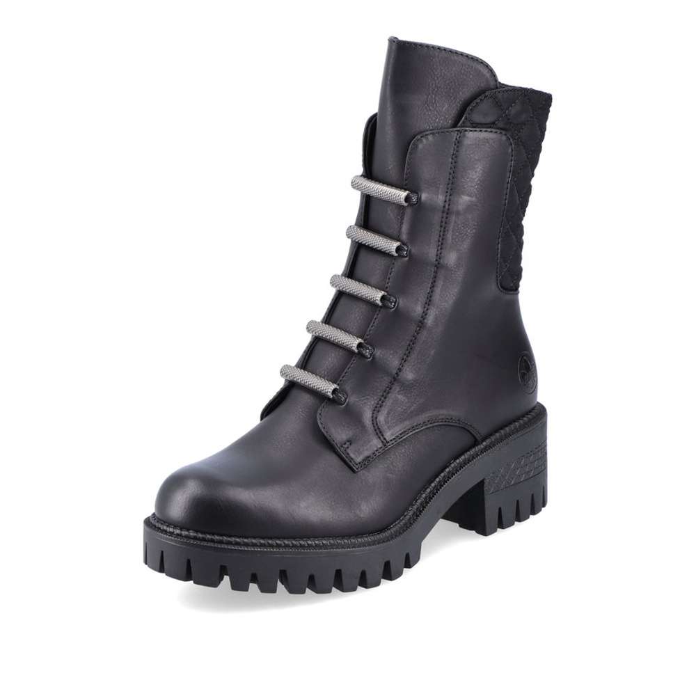 Hladký černý svršek je v zadní části zdoben textilní prošívanou vsadkou. Šněrování je zde spíše designová záležitost. Pro snadné nazouvání je z vnitřní strany všitý funkční zip.