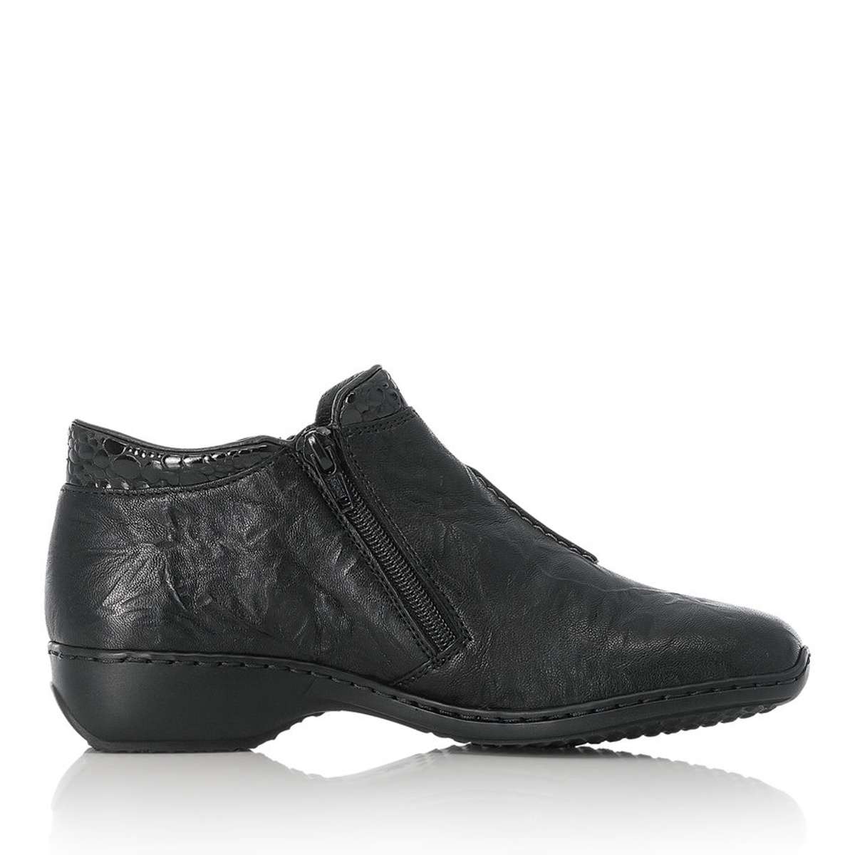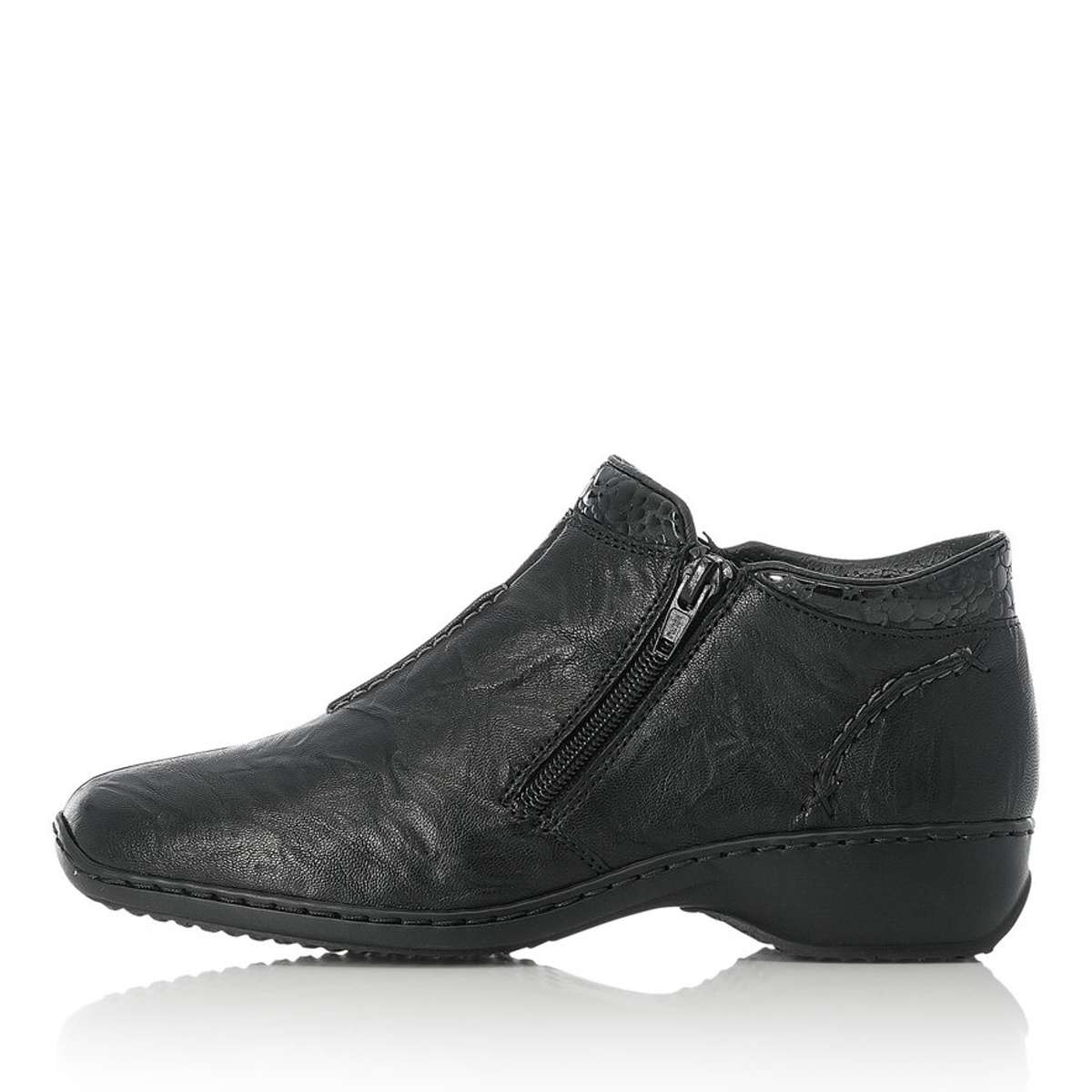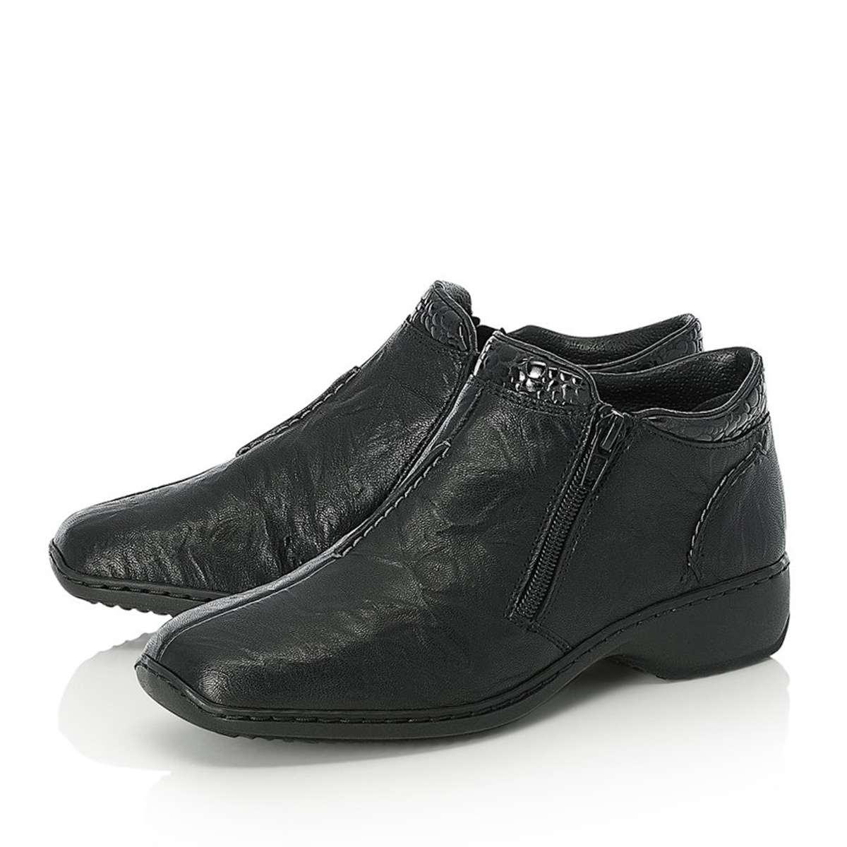 Tato jednoduchá kožená dámská kotníková obuv značky RIEKER, bude skvělou volbou pro vaše podzimní dny.