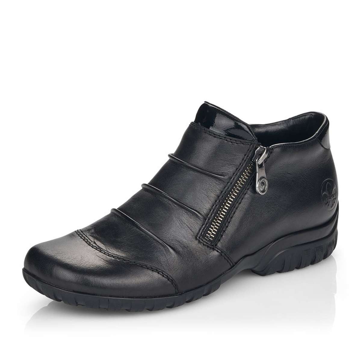 Dámské kotníky Rieker potěší každou ženu v zimním počasí. Kožený svršek je zdobený lehkým nařasením. Zapínání na zip ulehčí obouvání bot. Vyjímatelná stélka je skvělým prvkem, například při sušení bot, nebo požadavku jiné stélky. Na zadní straně boty je vytlačené malé logo značky. Boty se hodí ke každému ouftitu. Budou skvělým společníkem na procházkách po městě. Technologie: Antistress – podešev je díky této technologii lehká, flexibilní, absorbuje nárazy při došlapu a snadno se přizpůsobí každé noze.
