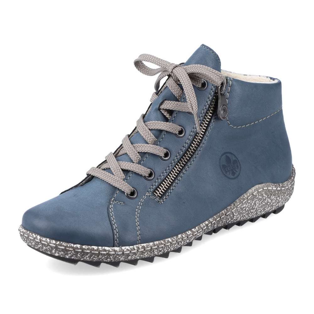 Úžasný dámský kotník značky RIEKER vyniká nad ostatní svou barvou. Svršek Krásný modrý svršek je zdobný vytlačeným logem značky a kontrastním prošíváním. Šněrováním šedými tkaničkami a funkčním zipem si pak upravíte obuv přímo k Vaší noze. Stélka Podšívka i vyjímatlená stélka jsou vyrobeny z hřejivého materiálu, který zajistí potřebný komfort i v chladných dnech. Podešev Kontrastní podešev dolaďuje celkový vzhled obuvi k dokonalosti a v nejvyšším místě je vysoká cca 3,3 cm. Díky technologii Antistress je podešev lehká, flexibilní, absorbuje nárazy při došlapu a snadno se přizpůsobí každé noze. Ať už je obujete na procházku nebo do města, nebudete litovat, nikdy Vás nezklamou. Technologie: Antistress