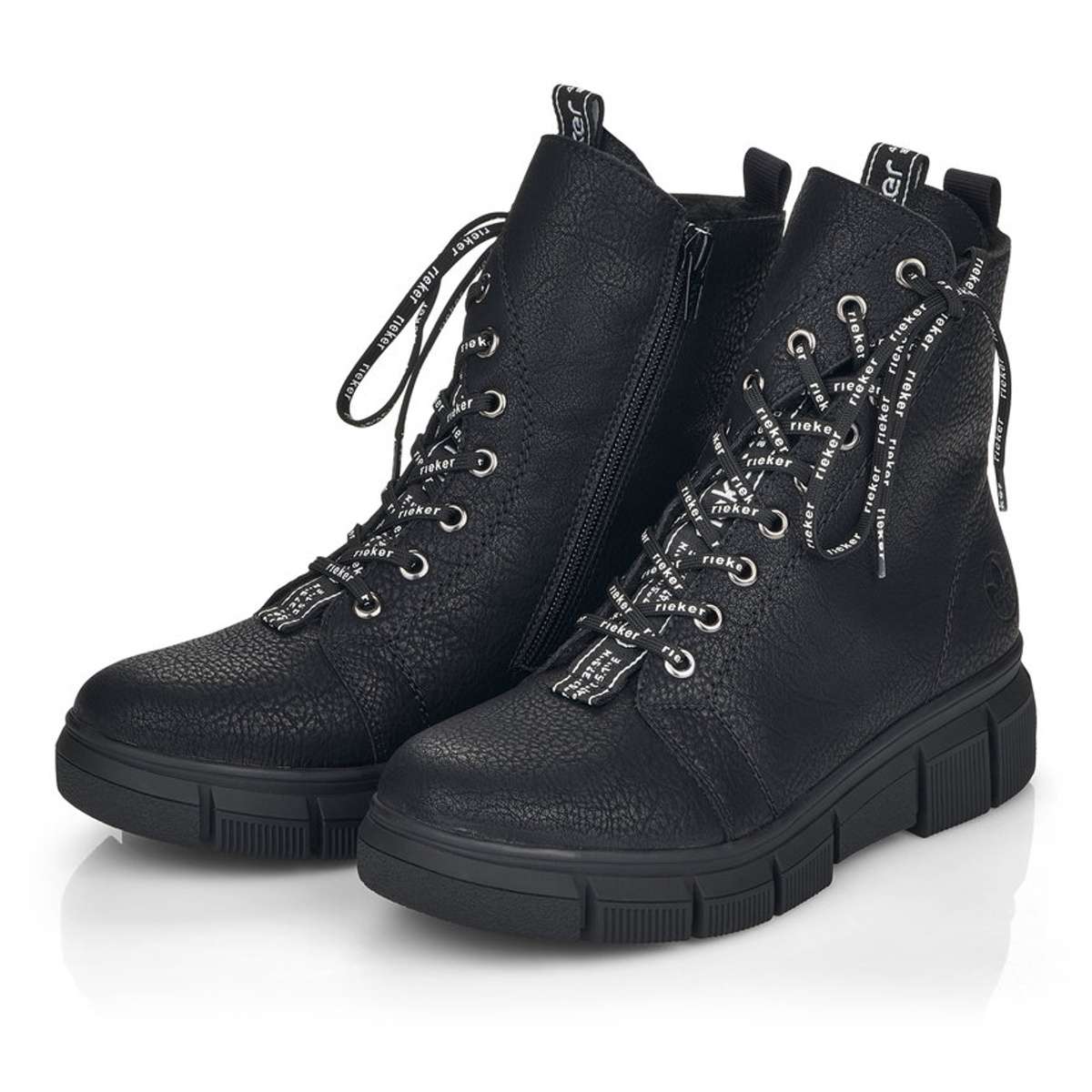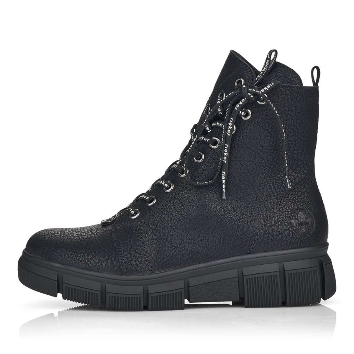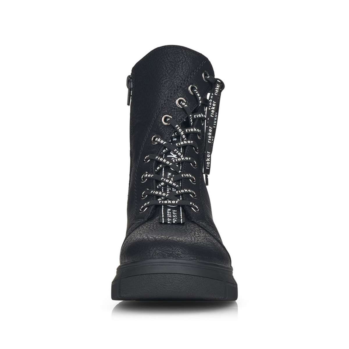 Jsou výrazně ozdobeny tkaničkami s nápisem RIEKER a kovovými kroužky, kterými tyto tkaničky provlékáte. Pro snadné obutí poslouží i zip z vnitřní strany, obuv si tak upravíte dle svých představ.