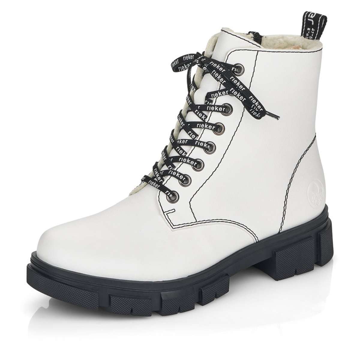 Šněrovací obuv s hladkým svrškem v bílé barvě, značky RIEKER. Svršek Velmi stylový model v krásném bílém odstínu s tkaničkami ozvláštněnými nápisy značky Rieker a výrazným černým prošitím. Obuv je šněrovací a nazutí Vám usnadní funkční zip na vnitřní straně. Stélka Pohodlná stélka je vyrobena z měkkého materiálu, který zajistí celodenní komfort a podšívka z imitace ovčí vlny Vás krásně zahřeje. Podešev Hrubá podešev s podpatkem cca 3,9 cm je vyrobena z velmi kvalitního syntetického materiálu. Podešev je díky technologii Antistress lehká, flexibilní, absorbuje nárazy při došlapu a snadno se přizpůsobí každé noze. Módní boty, se kterými se budete cítit úžasně. Technologie: Antistress