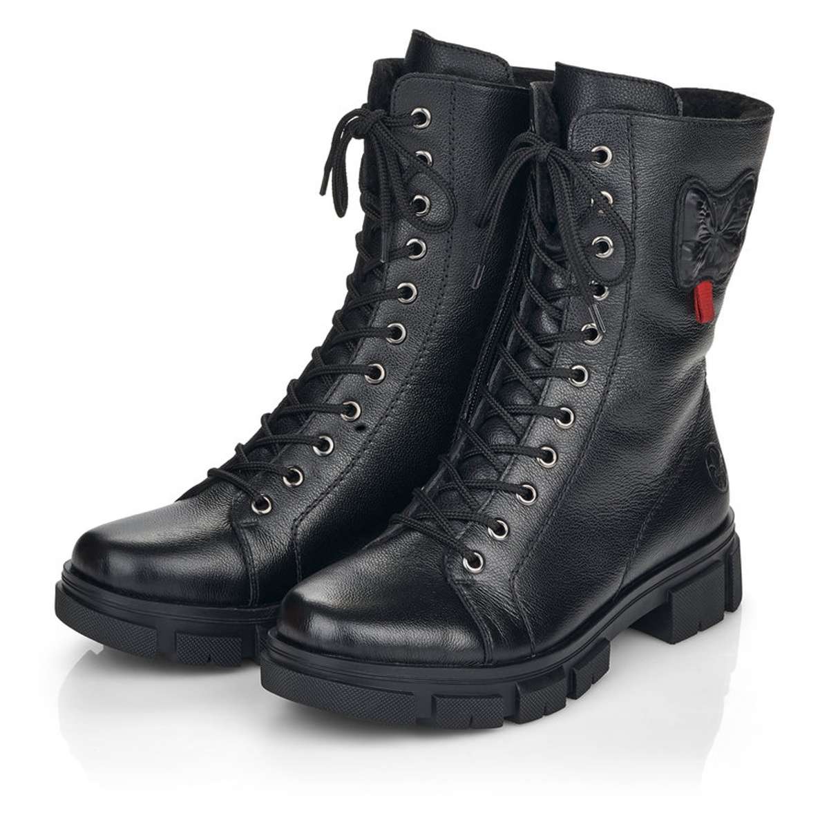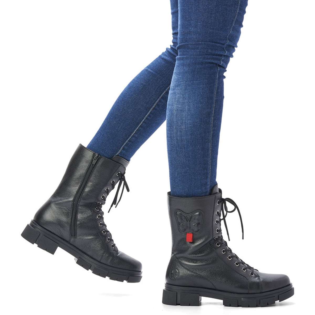 Šněrovací obuv s hladkým svrškem a vtlačeným obrázkem motýla, značky RIEKER.