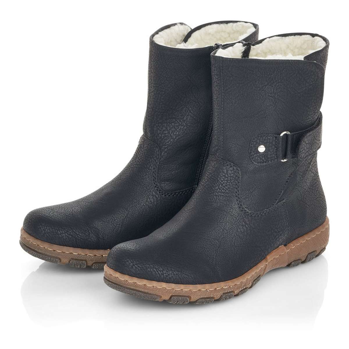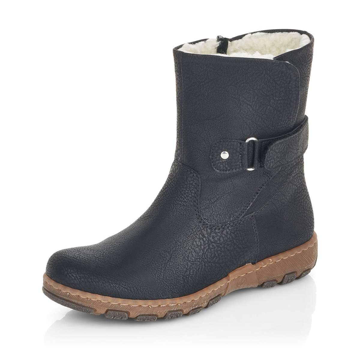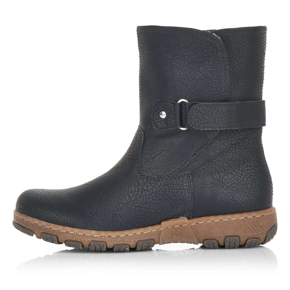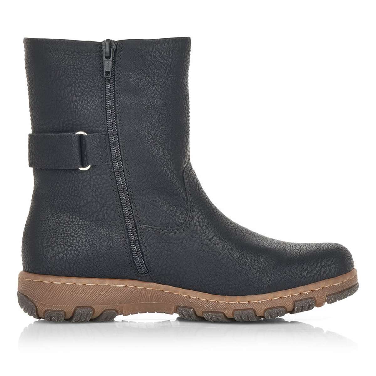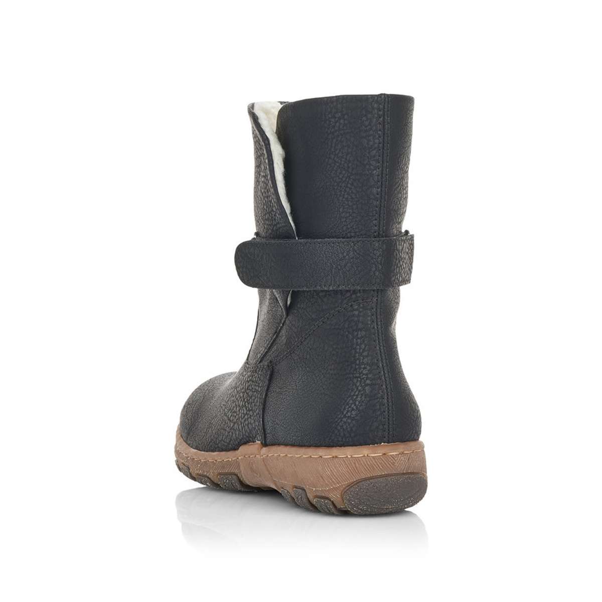 Vyšší kotníkové boty RIEKER s vrchním rozparkem a páskem na vnější straně budou tou správnou volbou do chladných zimních dnů. Funkční zip na vnitřní straně skvěle usnadní Vaše obutí. Podšívka z teplé kožešiny krásně zahřeje a podešev s hrubším vzorkem zajistí pocit bezpečí a stabilitu na nerovném terénu. Boty s měkkou stélkou z kvalitního materiálu jsou zárukou každodenního pohodlí. K těmto jednoduchým zatepleným botám si můžete obléct cokoliv z Vaší skříně. Technologie: Antistress – podešev je díky této technologii lehká, flexibilní, absorbuje nárazy při došlapu a snadno se přizpůsobí každé noze.