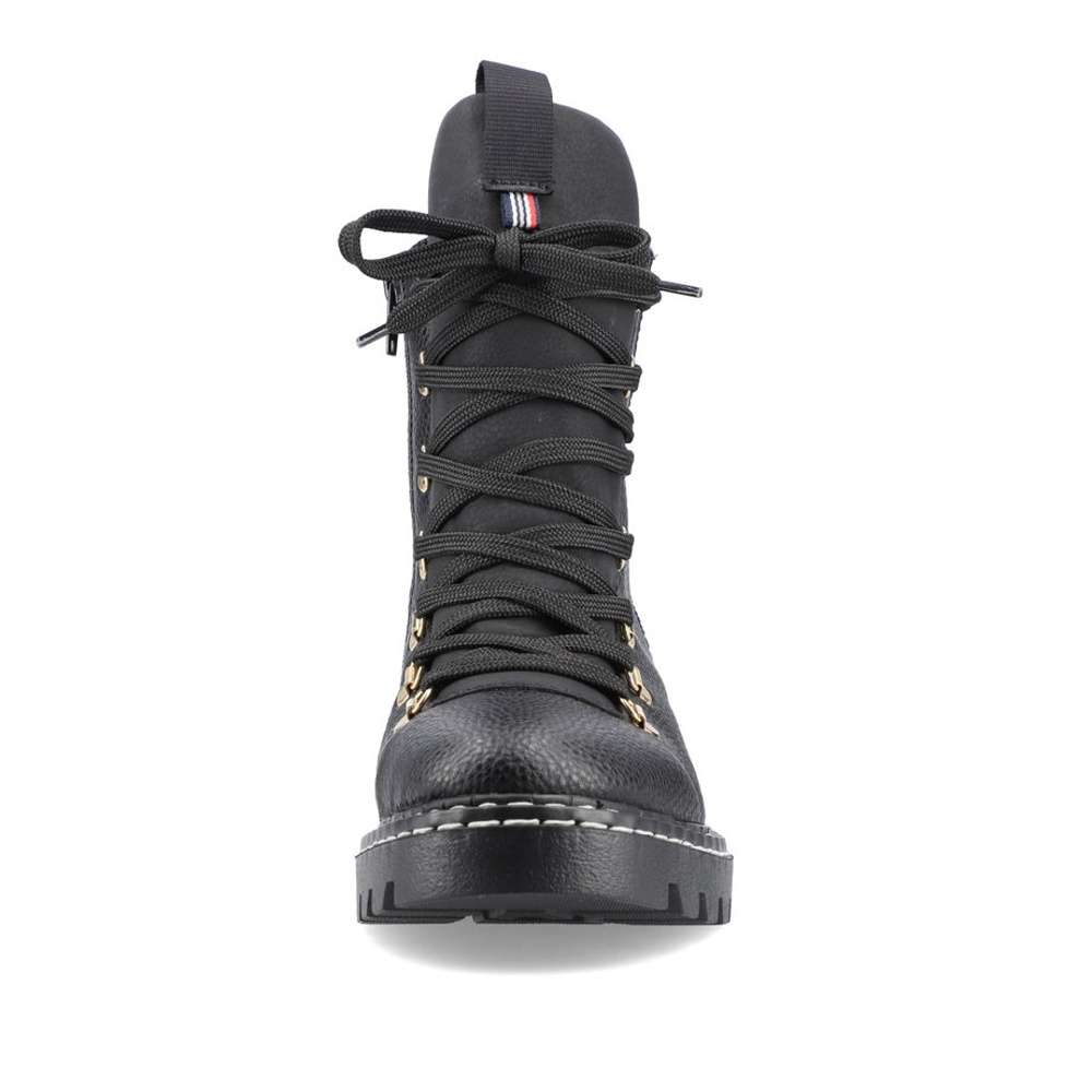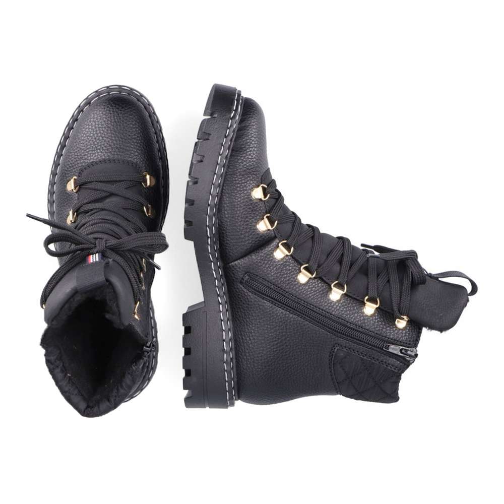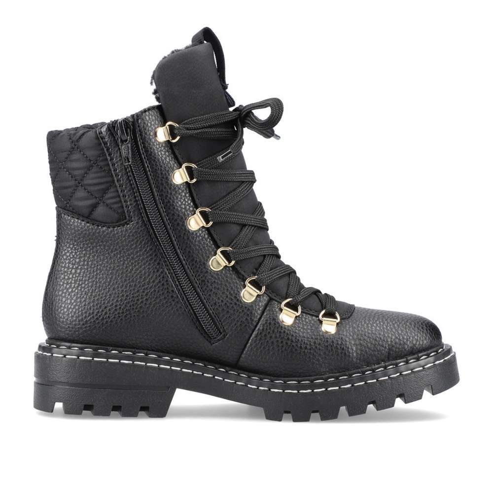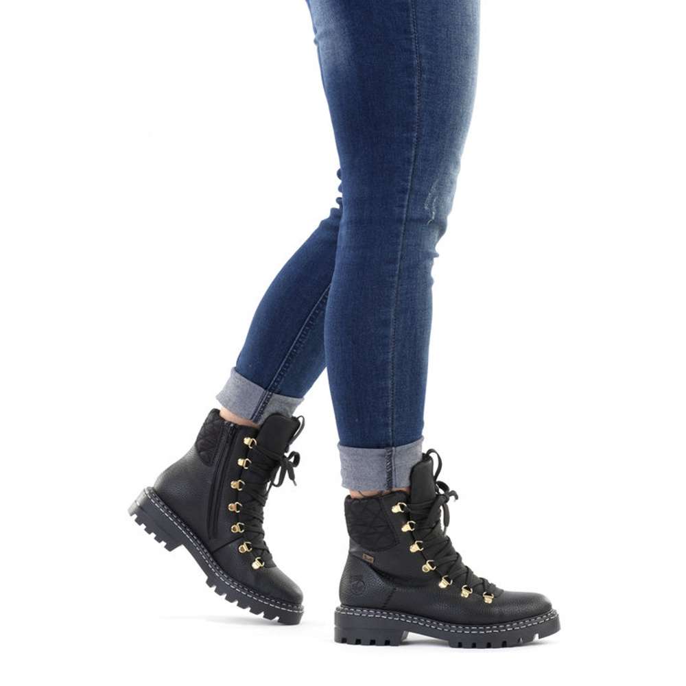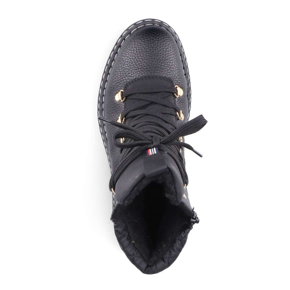 Tyto teploučké dámské kotníkové botky od firmy RIEKER prostě musíte mít. Pokud Vás nezaujme na první pohled kovová aplikace na tkaničky, tak to bude určitě bílé prošití na podešvi. Na černém matném materiálu je nad patou umístěné logo značky, které decentně zjemní vzhled obuvi. Kožešinová podšívka, funkční zip, texová membrána a Antistress technologie, Vám zaručí maximální komfort a pohodlí pro celodenní nošení. Tímto skvělým vzorem určitě neprohloupíte, v každém šatníku se totiž najdou kousky, které k nim uplatníte.