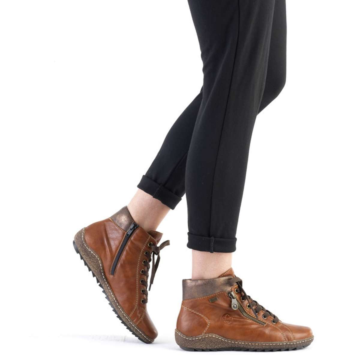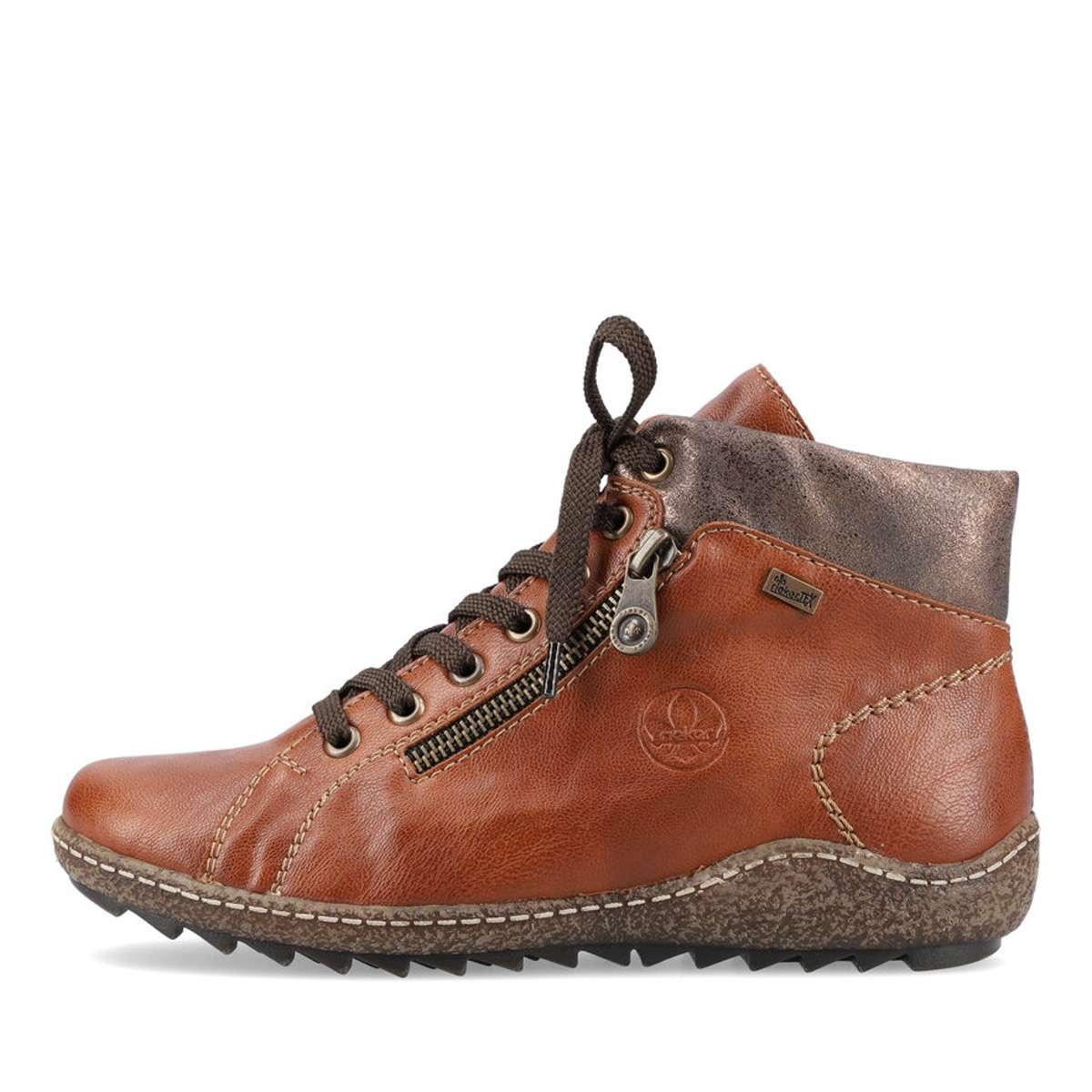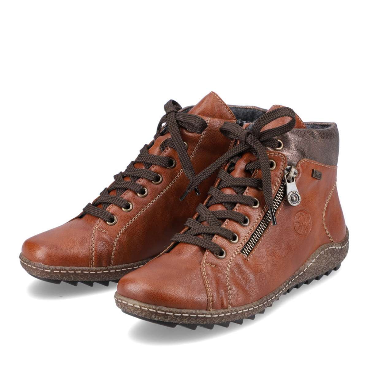 Sportovní hnědá kotníková obuv od značky RIEKER vhodná do chladnějšího počasí.