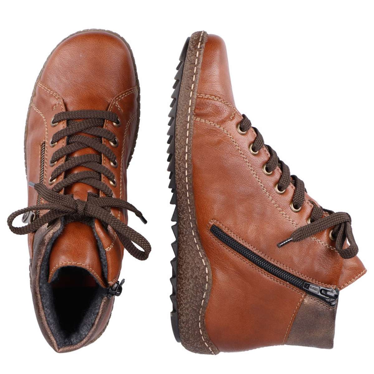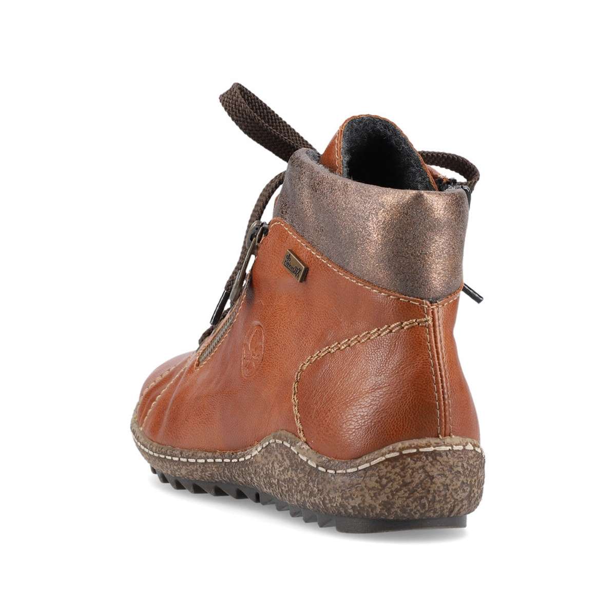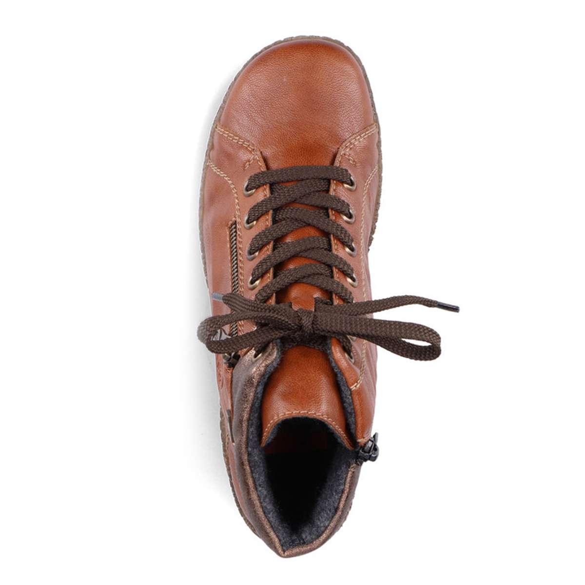 Sportovní hnědá kotníková obuv od značky RIEKER vhodná do chladnějšího počasí.