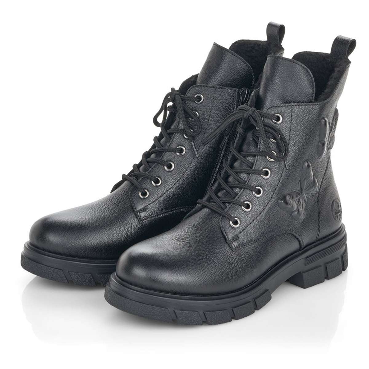 Detailní informace Kožená kotníková obuv od značky RIEKER s jemným vzorem motýlků nadchne jistě všechny ženy. Svršek této obuvi je z kvalitní hladké kůže a uvnitř najdete hřejivou kožíškovou podšívku, kterou oceníte v chladných zimních dnech. Pohodlí při chůzi Vám zajistí měkká stélka a stabilitu pak vyšší podešev s hrubším dezénem. Snadné nazouvání Vám zajistí šněrování společně s funkčním zipem z vnitřní strany. Tento univerzální model snadno doplní každý outfit, ať už oblečete klasické džíny či romantickou sukni, stále budete vypadat skvěle.