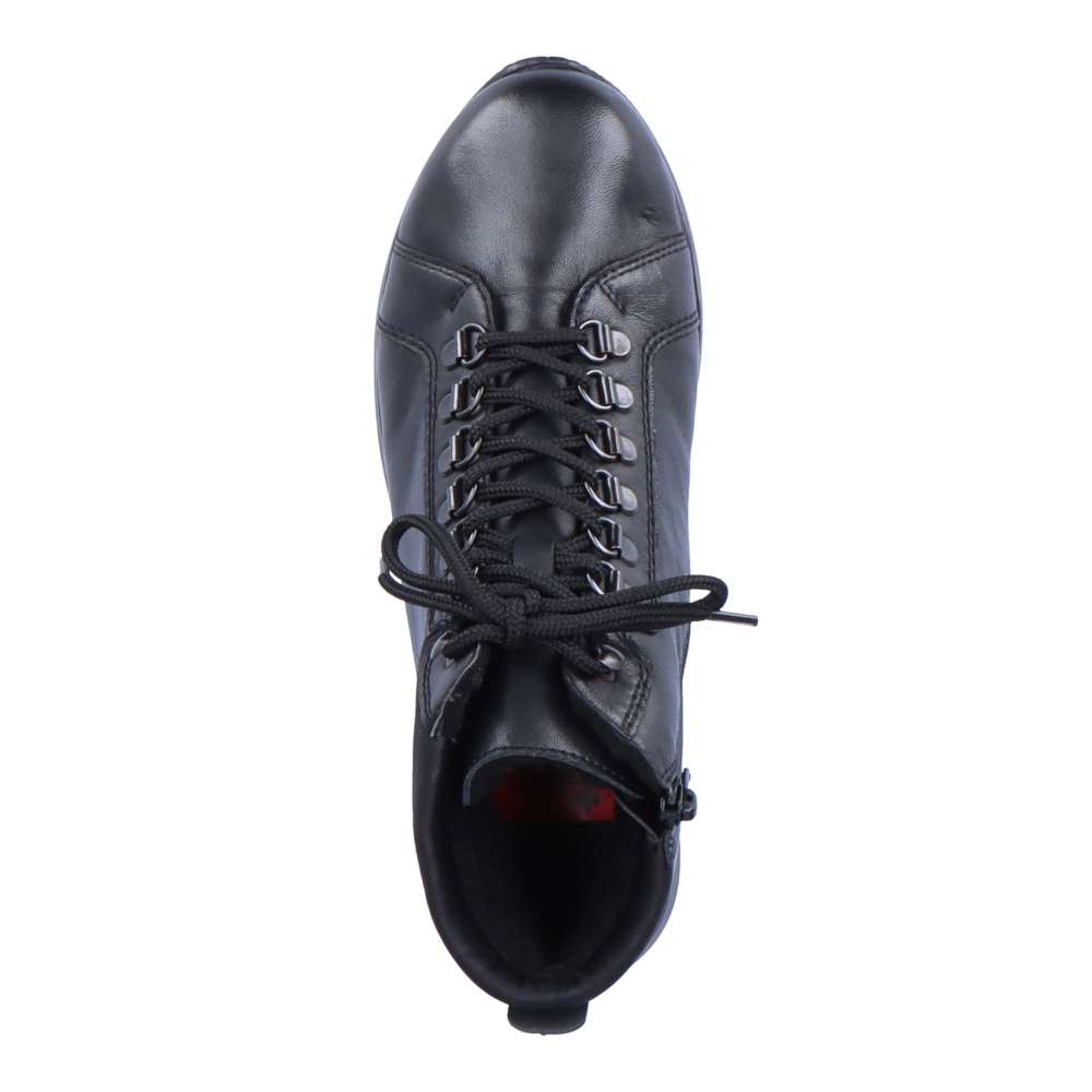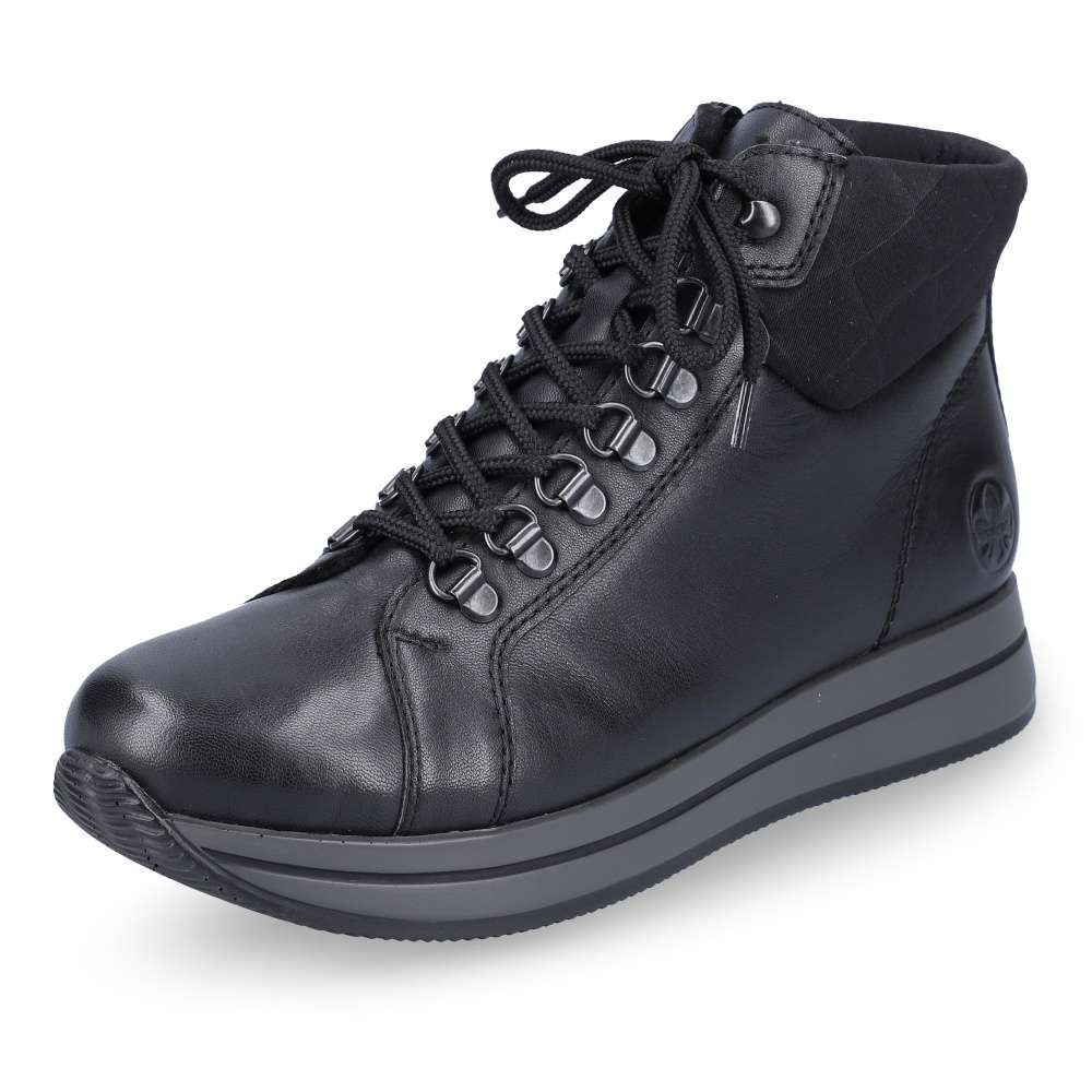 Tento kousek od značky Rieker je ideální volbou do chladných dní. Hladký, kožený svršek zaručuje jednoduchou údržbu. Kromě tkaniček obuv disponuje i funkčním zipem na vnitřní straně. Oblast paty zdobí vytlačené logo značky Rieker. Díky černé barvě obuv lehce sladíte s každým outfitem. Obuv disponuje vyjímatelnou stélkou. Ať už se vydáte kamkoli, budete kočka. Technologie: Antistress – podešev je díky této technologii lehká, flexibilní, absorbuje nárazy při došlapu a snadno se přizpůsobí každé noze. Tato bota je vybavena vyjímatelnou stélkou.