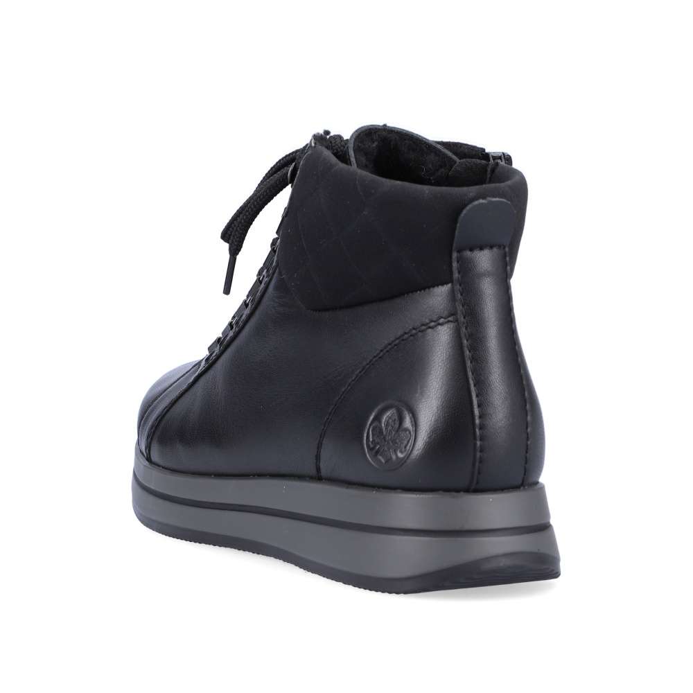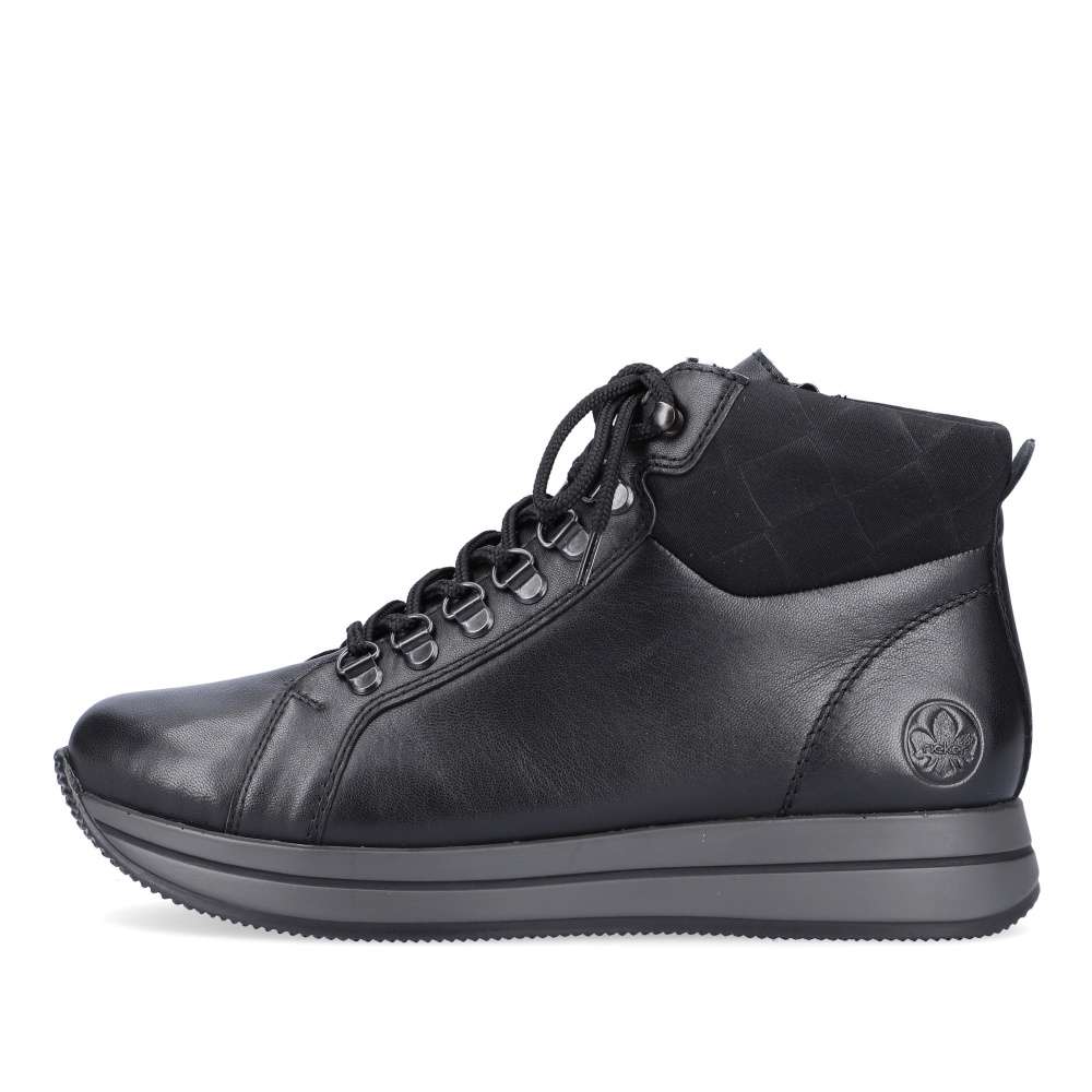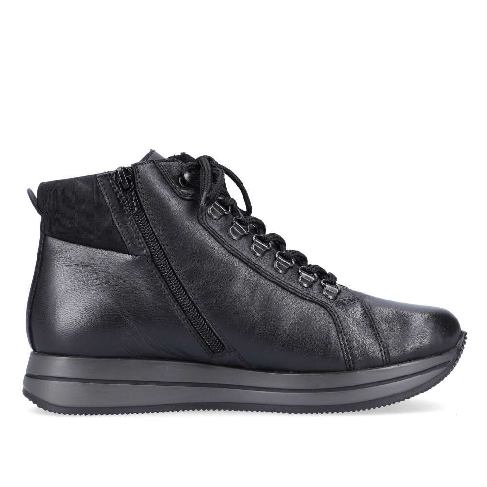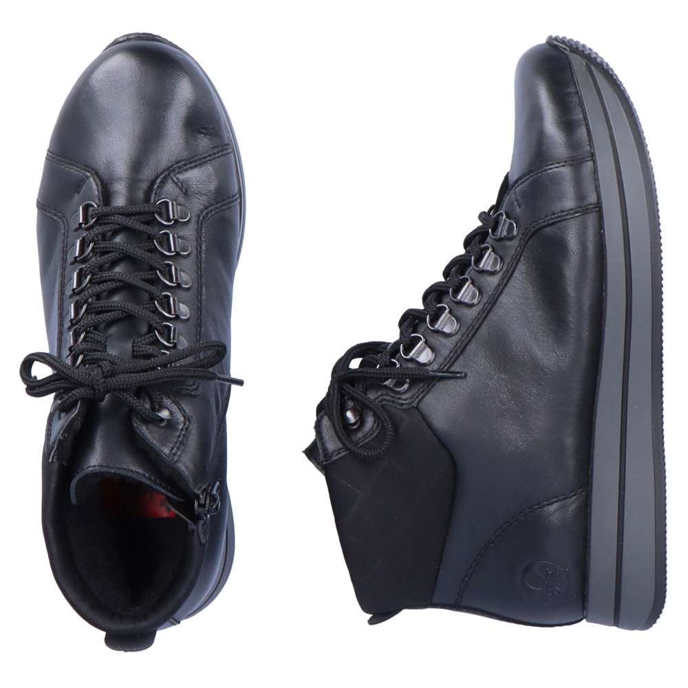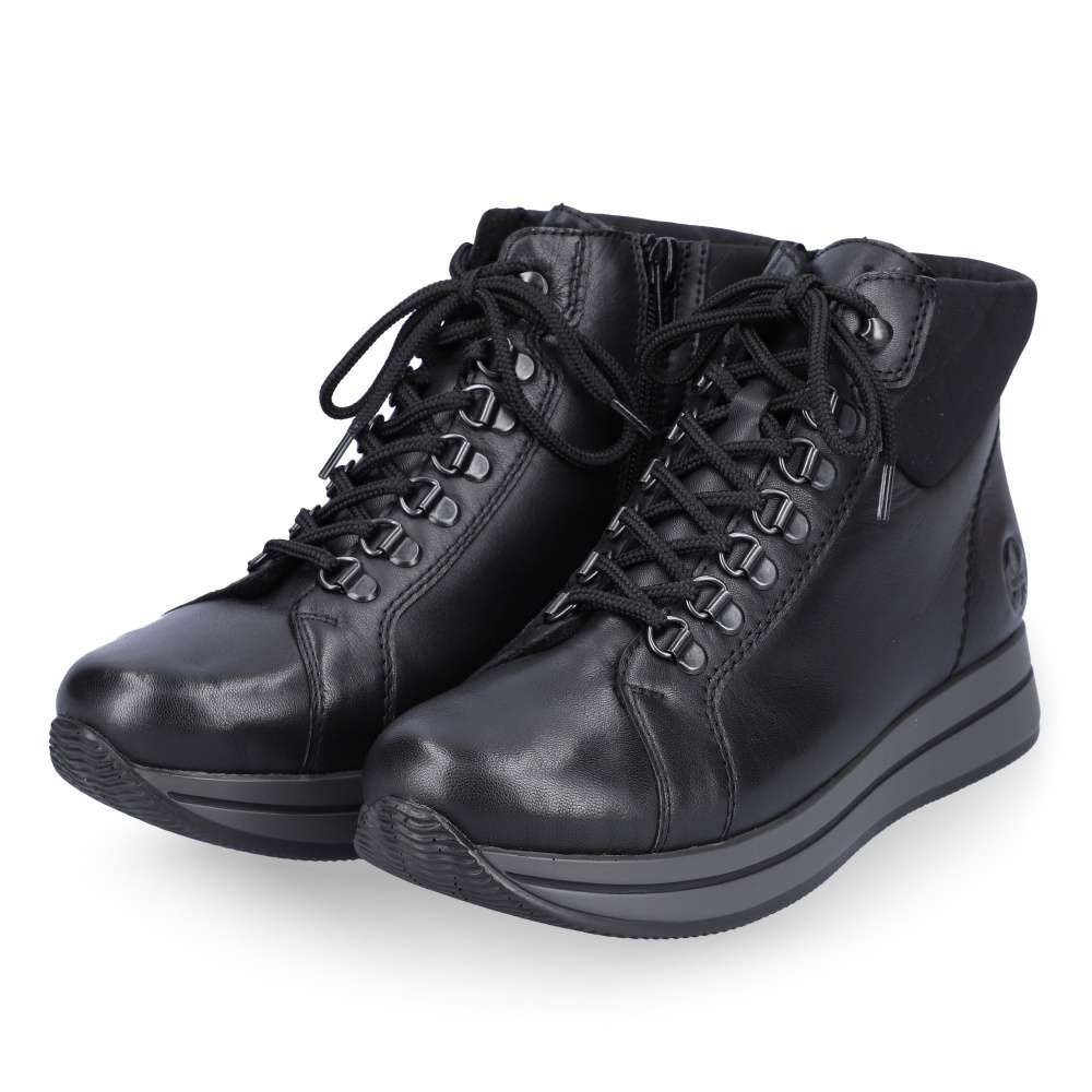 Detailní informace Tento kousek od značky Rieker je ideální volbou do chladných dní. Hladký, kožený svršek zaručuje jednoduchou údržbu. Kromě tkaniček obuv disponuje i funkčním zipem na vnitřní straně. Oblast paty zdobí vytlačené logo značky Rieker. Díky černé barvě obuv lehce sladíte s každým outfitem. Obuv disponuje vyjímatelnou stélkou. Ať už se vydáte kamkoli, budete kočka.