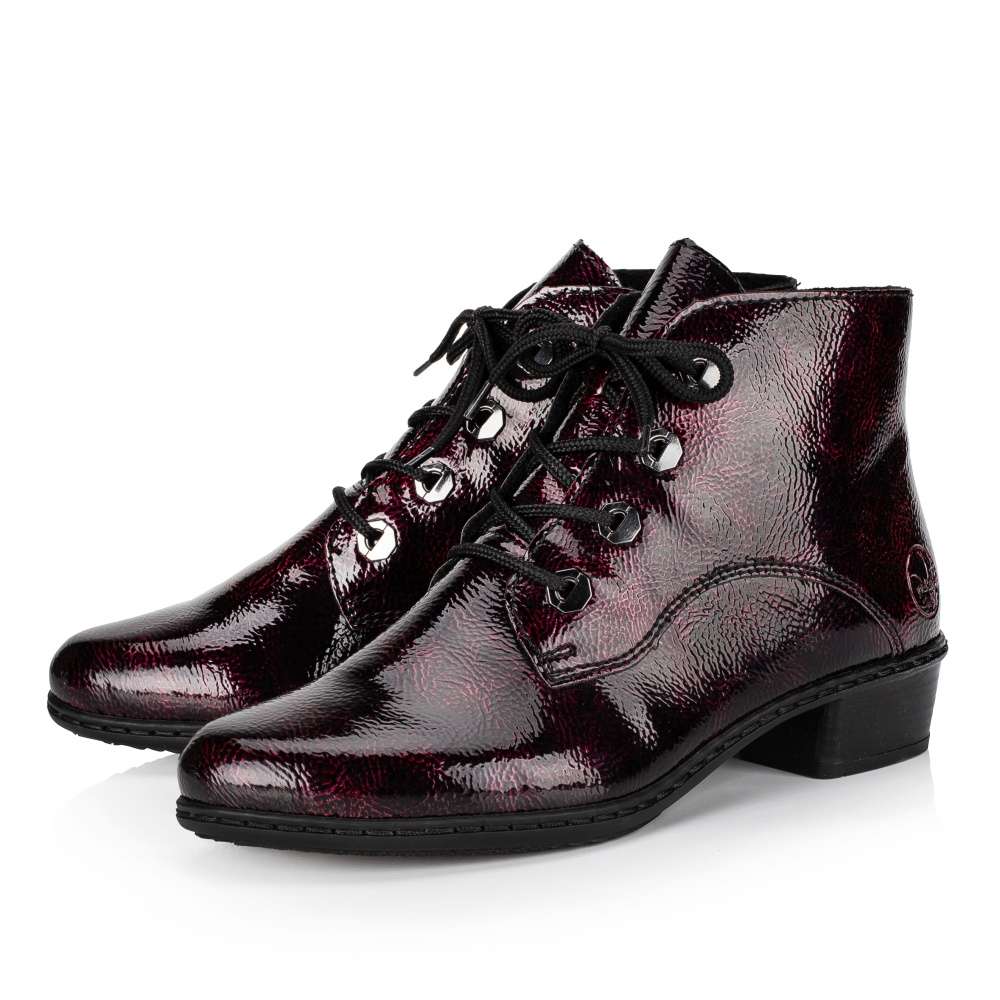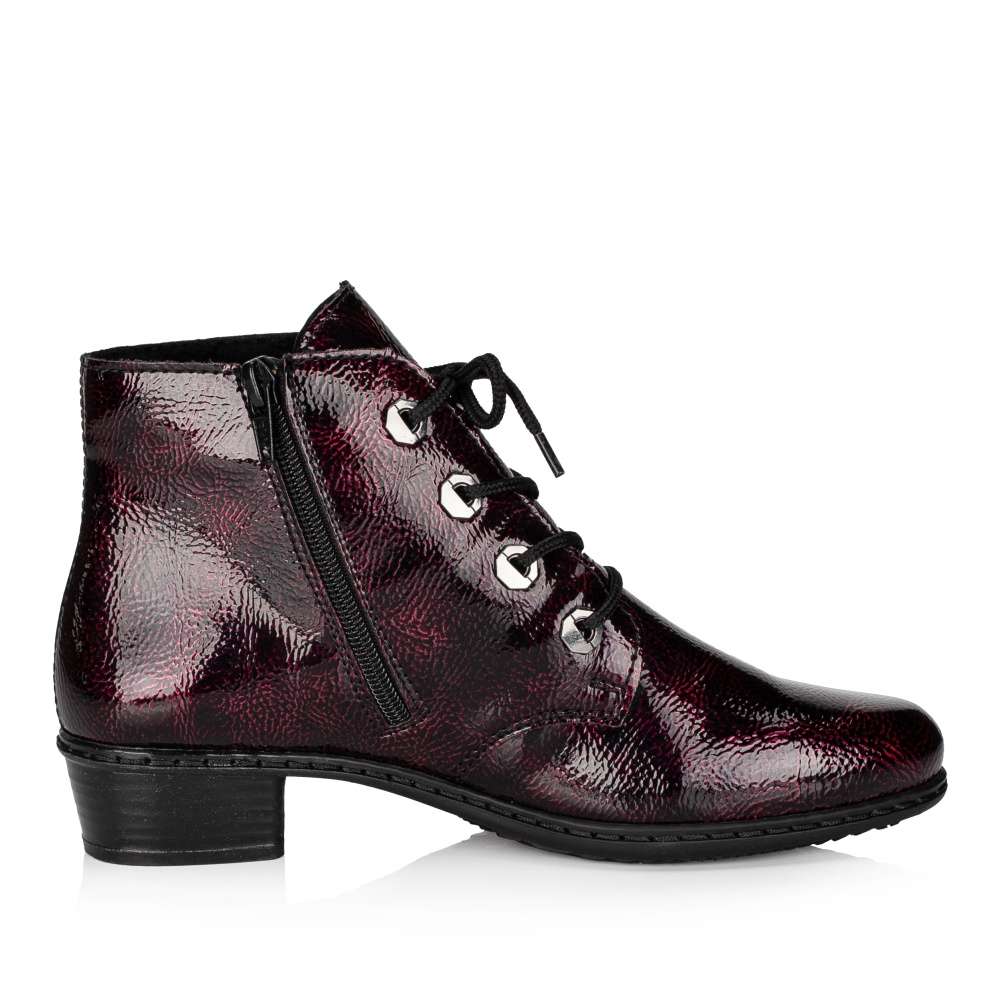 Krásný dámský kotník od značky Rieker je výjimečný svým decentně lesklým svrškem. Pro snadnější nazutí slouží funkční zip z vnitřní strany a šněrování. Stélka je příjemně měkká a zaručí Vám pohodlí po celý den. Navíc také oceníte podšívku s příjemným kožíškem, která Vás zahřeje při chladném počasí. Podešev je vysoká cca 3,5 cm a díky technologii Antistress je lehká, flexibilní a absorbuje nárazy při došlapu. S tímto modelem se budete cítit příjemně a stylově ať už půjdete kamkoliv.
