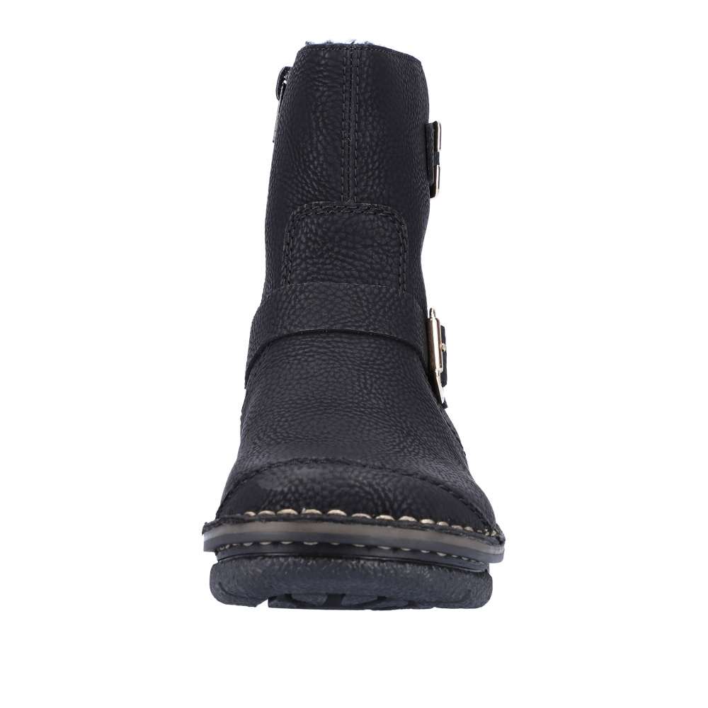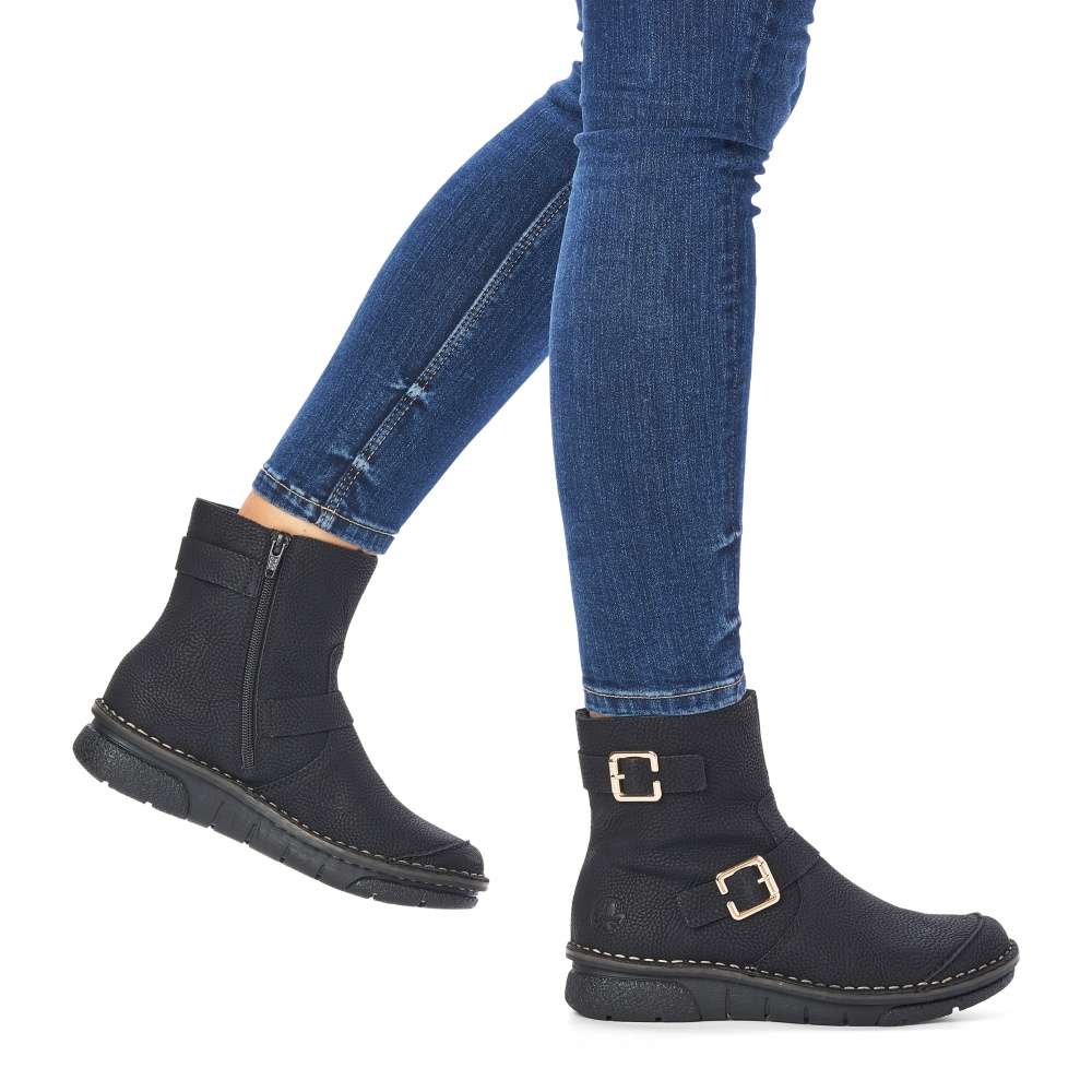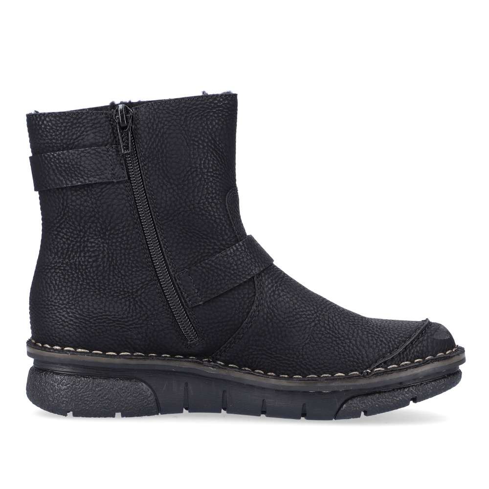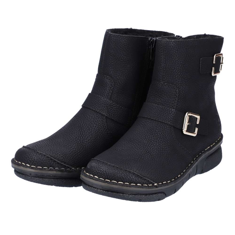 Tyto kotníčkové zimní botky značky RIEKER v sobě spojují eleganci a vysoké pohodlí. Již na první pohled Vás zaujmou svým neobvyklým designem. Jsou zdobené dvěma přezkami a decentním logem značky v zadní části boty. Svršek je s podešví spojen kontrastním prošíváním, což je pro značku Rieker typické. Boty snadno obujete pomocí zipu. Měkoučká stélka Vám zajistí to nejvyšší pohodlí, teplá huňatá podšívka Vás zase ochrání před nízkými teplotami. Díky těmto luxusním botkám se budete i ve všedních dnech cítit nevšedně a výjimečně.