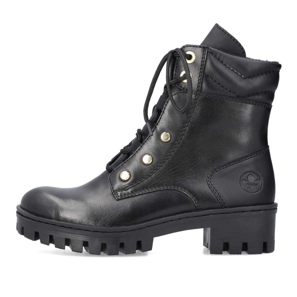 Detailní informace Tato obuv značky RIEKER je spojením originality a vysokého pohodlí. Hladký svršek je vyroben v kombinaci kožených a syntetických materiálů. Je zdoben jemným prošíváním a decentním logem značky. Boty na první pohled zaujmou zajímavým šněrováním. Tkaničky jsou provlečeny ve spodní části textilními poutky a v horní části výraznými kovovými očky. Přední část je zdobena kovovými cvočky. Vnitřní funkční zip využijete ke snadnému obutí. Pohodlí na každém kroku zajistí měkoučká stélka. Tyto boty využijete všude tam, kde budete chtít vyniknout.