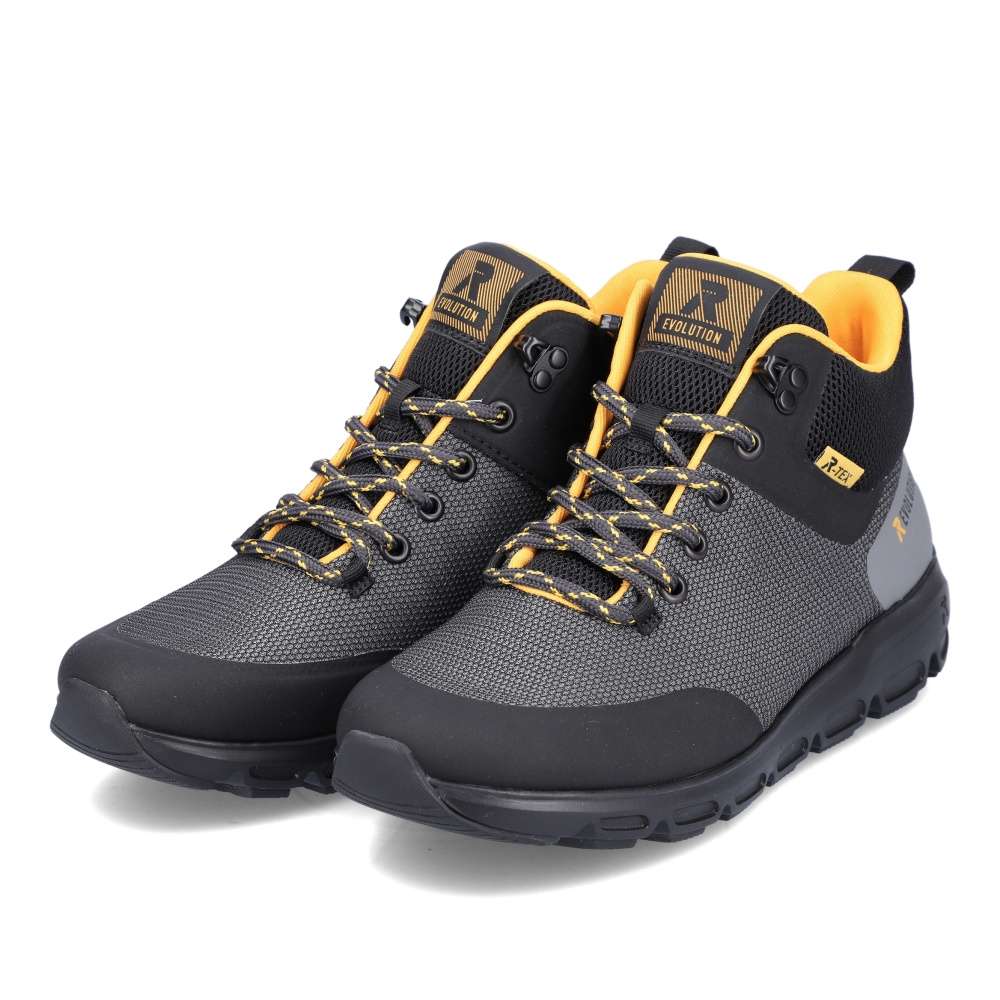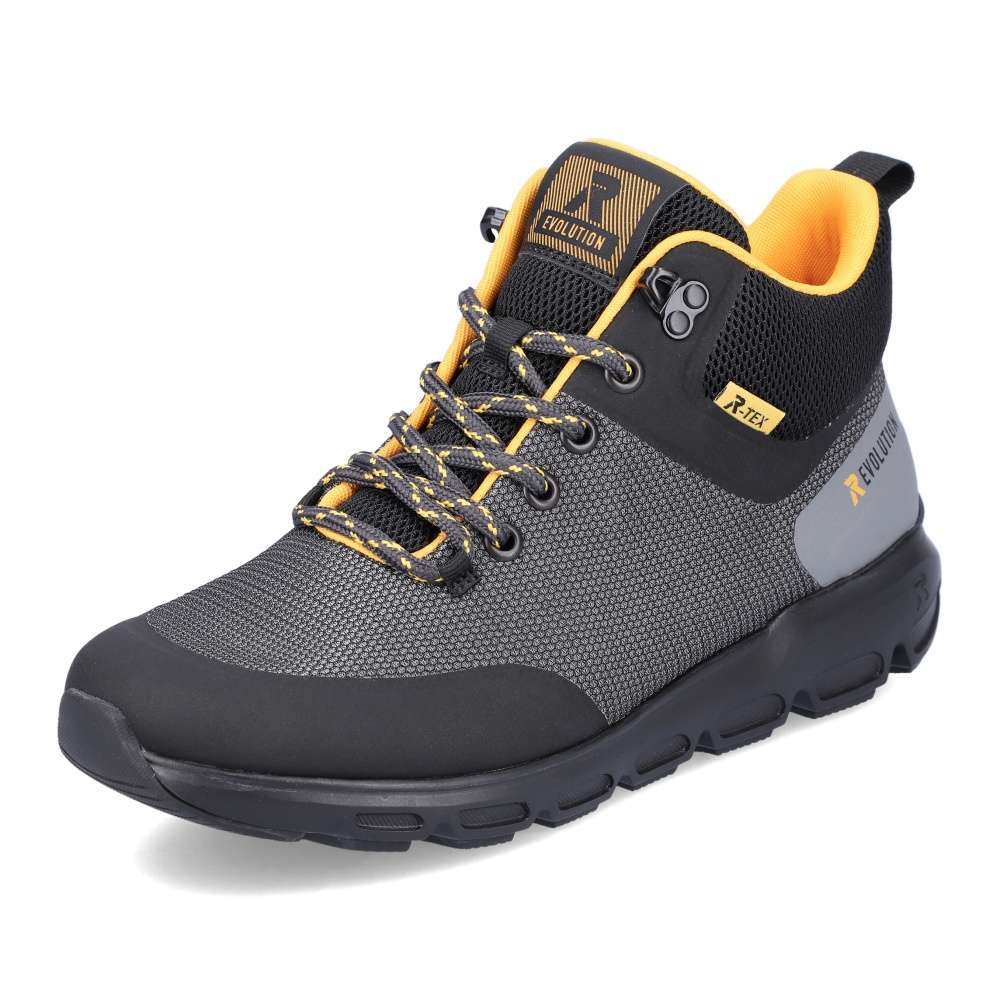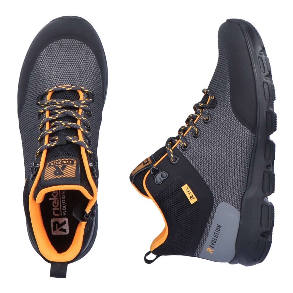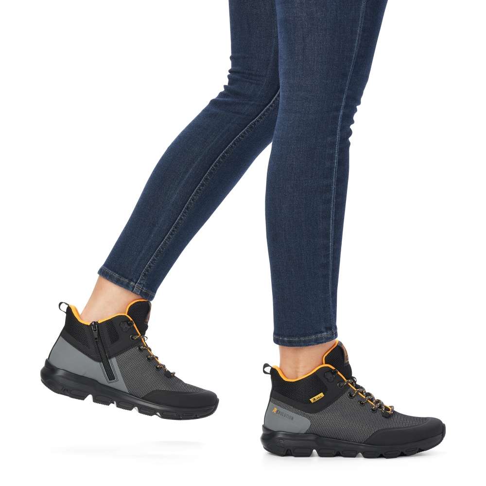 Rieker Revolution je nová řada moderní sportovní obuvi s obrovským důrazem na komfort a pohodlí i při celodenním nošení. Nadčasově krásné dámské sportovní kotníky značky RIEKER máme v naší nabídce pro ty z Vás, kteří máte rádi pohodlí a styl zároveň. Svršek v krásné kombinaci barev černé, šedé a oranžové perfektně doplní Váš outfit. Zipem z vnější strany a šněrováním se budou dobře obouvat a přizpůsobí se Vaší noze. Vyjímatelná stélka SoftFoam, díky které se budete cítit jako v bavlnce a membrána TEX, ta se zas postará o nepromokavost a prodyšnost zároveň, je ideální kombinace pro Vás. Váš podzimní den nebude vůbec, tak sychravý, jak by se mohlo zdát, díky našim botám a vašemu pohodlí. Technologie: SoftFoam – unikátní stélka z paměťové pěny, která změkčuje došlap, maximálně se přizpůsobí tvaru Vašeho chodidla, ale zároveň ji můžete vyjmout, vyměnit nebo vyvětrat. Rieker TEX – funkční vrstva, díky které je bota nepromokavá a přesto prodyšná.