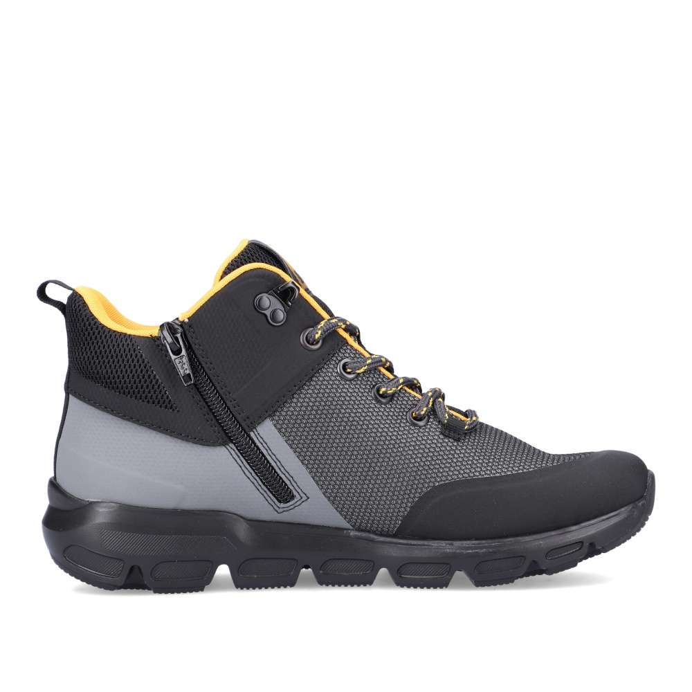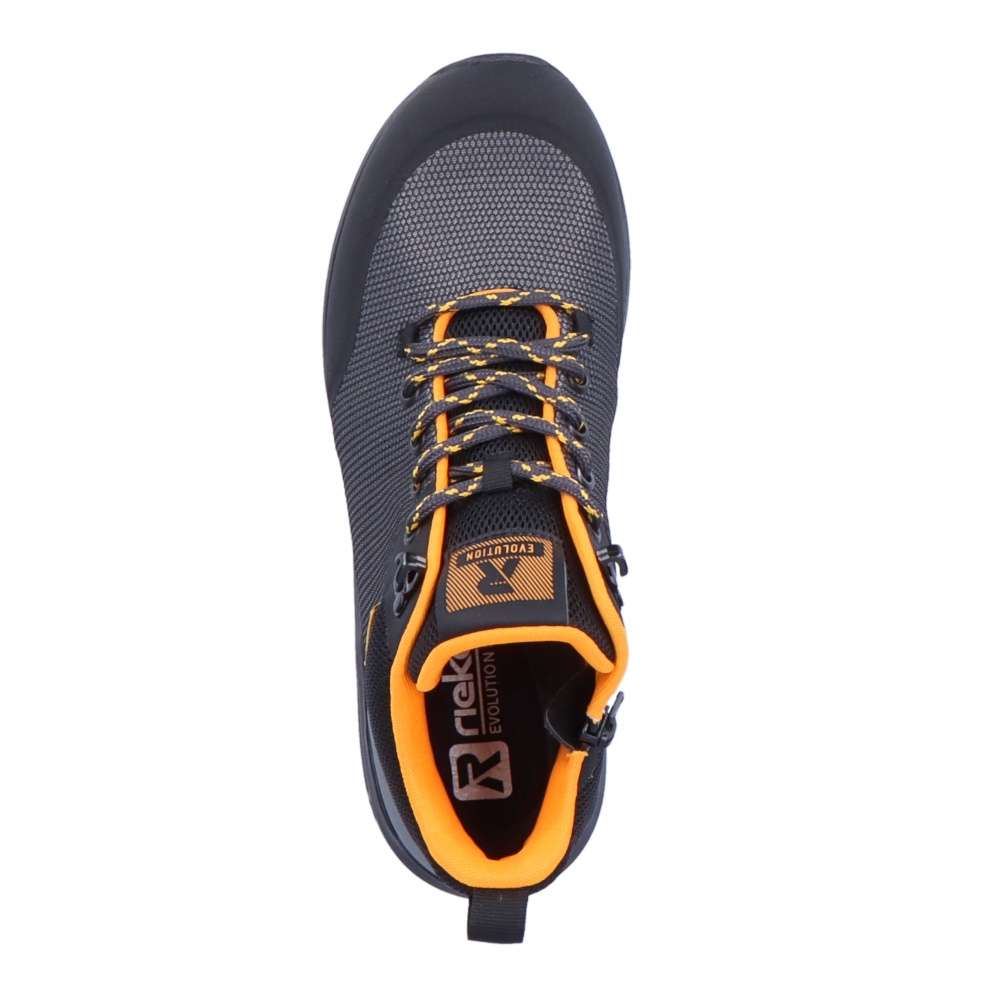 Detailní informace Rieker Revolution je nová řada moderní sportovní obuvi s obrovským důrazem na komfort a pohodlí i při celodenním nošení. Nadčasově krásné dámské sportovní kotníky značky RIEKER máme v naší nabídce pro ty z Vás, kteří máte rádi pohodlí a styl zároveň. Svršek v krásné kombinaci barev černé, šedé a oranžové perfektně doplní Váš outfit. Zipem z vnější strany a šněrováním se budou dobře obouvat a přizpůsobí se Vaší noze. Vyjímatelná stélka SoftFoam, díky které se budete cítit jako v bavlnce a membrána TEX, ta se zas postará o nepromokavost a prodyšnost zároveň, je ideální kombinace pro Vás. Váš podzimní den nebude vůbec, tak sychravý, jak by se mohlo zdát, díky našim botám a vašemu pohodlí.