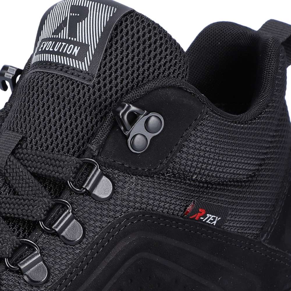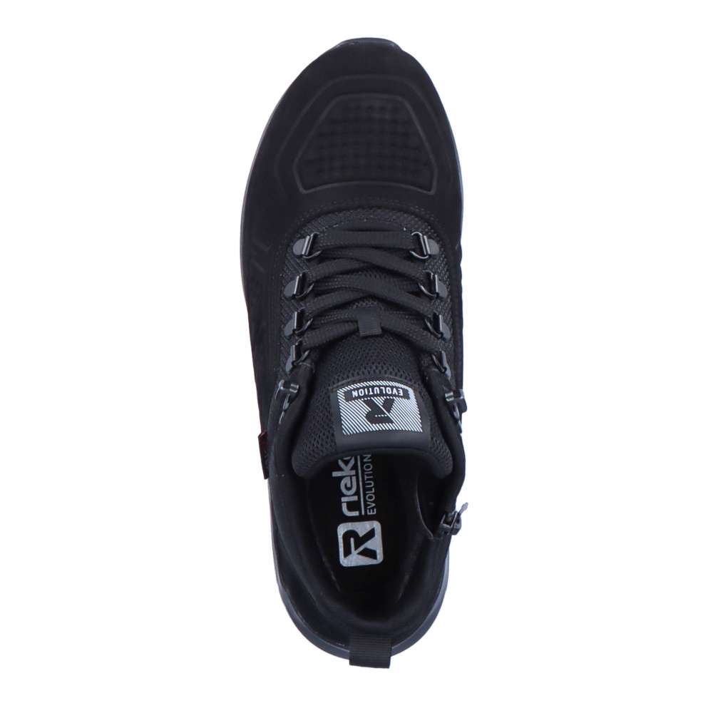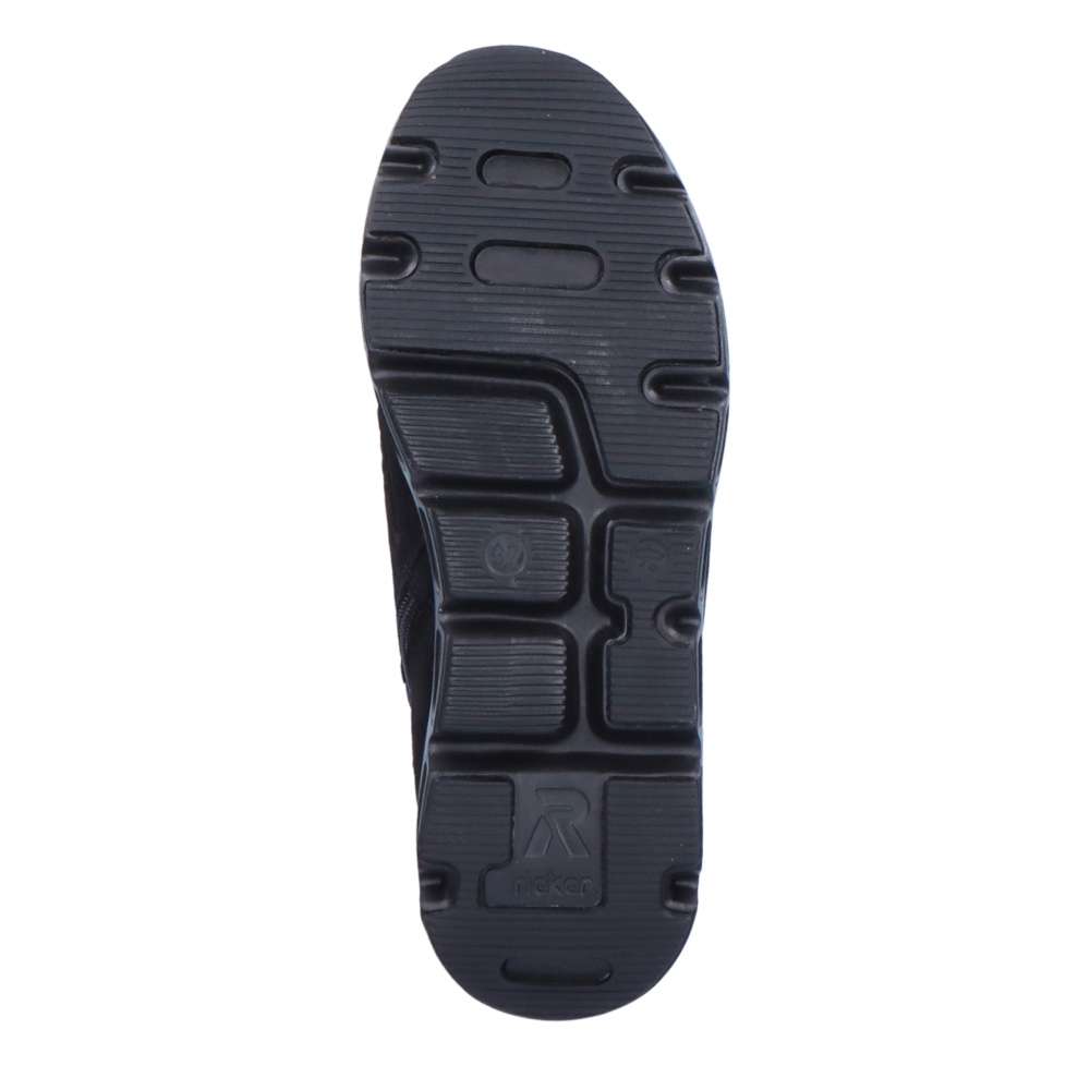 Rieker Revolution je nová řada moderní sportovní obuvi s obrovským důrazem na komfort a pohodlí i při celodenním nošení. Sportovní dámské kotníky značky RIEKER máme v naší nabídce pro ty z Vás, kteří máte rádi pohodlí a sportovní styl. Černý svršek, perfektně doplní Váš outfit ať bude v jakýchkoliv barvách a Vy se budete cítit dobře. Zipem z vnější strany a šněrováním se budou dobře obouvat a přizpůsobí se Vaší noze. Vyjímatelná stélka SoftFoam, díky které se budete cítit jako v bavlnce a membrána TEX, ta se zas postará o nepromokavost a prodyšnost zároveň, je ideální kombinace pro Vás. Váš podzimní den nebude vůbec, tak sychravý, jak by se mohlo zdát, díky našim botám a vašemu pohodlí.