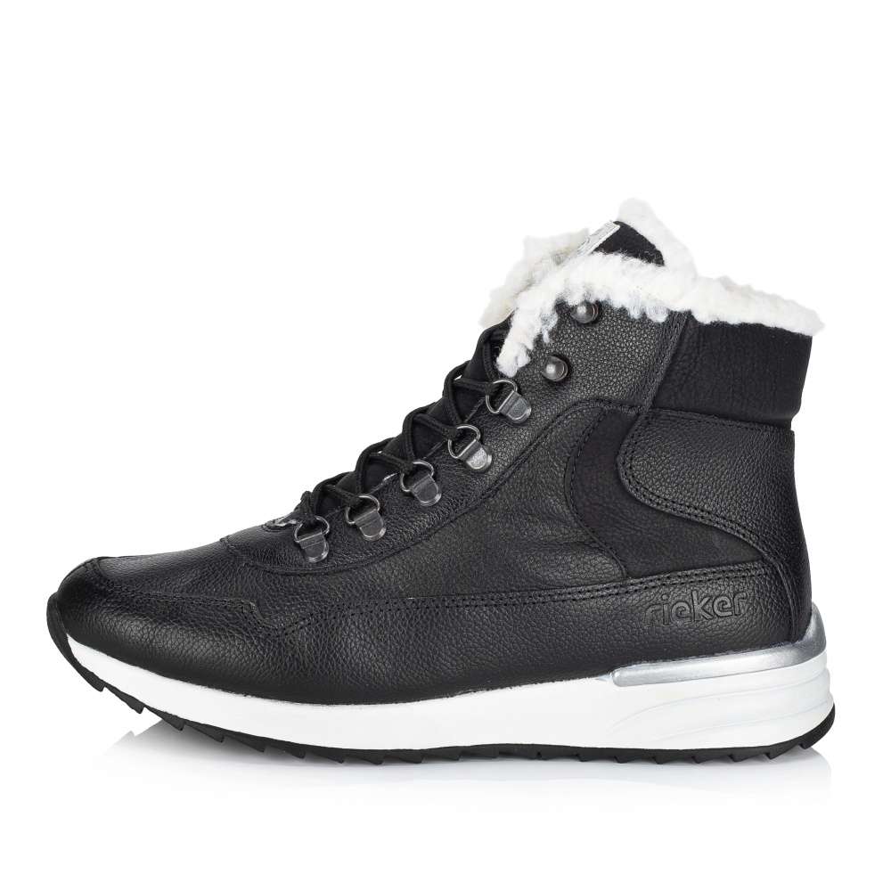 Dámská nadčasová kotníková obuv značky RIEKER Vás okouzlí na první pohled. Kombinovaný svršek je zdoben jemným prošíváním. Pro pohodlné obutí a přizpůsobení se obuvi dle Vašich potřeb poslouží šněrování tkaničkami. Zvýšená podešev a měkká stélka zajistí maximální komfort při chůzi. S tímto jedinečným modelem zazáříte při každé příležitosti. Díky zateplené podšívce budou Vaše nohy v teple i během chladných dnů. Technologie: Obuv je vybavena teplou podšívkou. MemoSoft – unikátní stélka z paměťové pěny, která změkčuje došlap, ale také se maximálně přizpůsobí tvaru Vašeho chodidla. Antistress – podešev je díky této technologii lehká, flexibilní, absorbuje nárazy při došlapu a snadno se přizpůsobí každé noze.