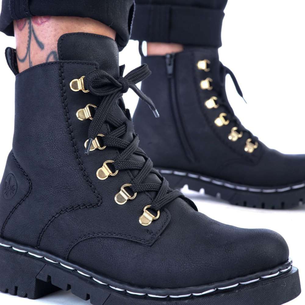 Detailní informace Šitá kvalitní obuv v černé barvě je od značky RIEKER a má jednoduchý design se zlatými nýty na tkaničky. Obuv má hřejivou podšívku a hodí se spíše do přechodového období. Na vnitřní straně se nachází zip pro rychlé nazutí a tkaničkami si můžete obuv přizpůsobit na Vaši nohu. Měkká stélka se Vám dokonale přizpůsobí a chůze bude maximálně pohodlná. Kvalitní podešev zabrání uklouznutí.