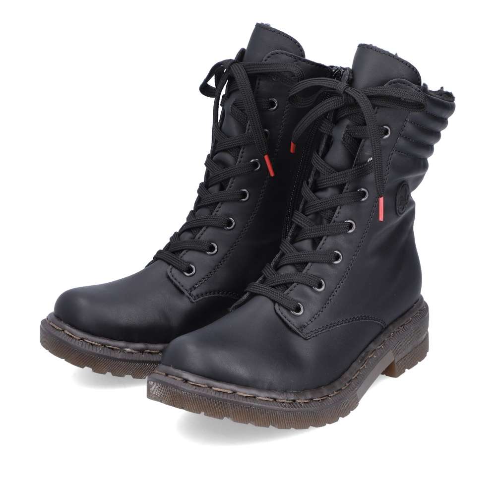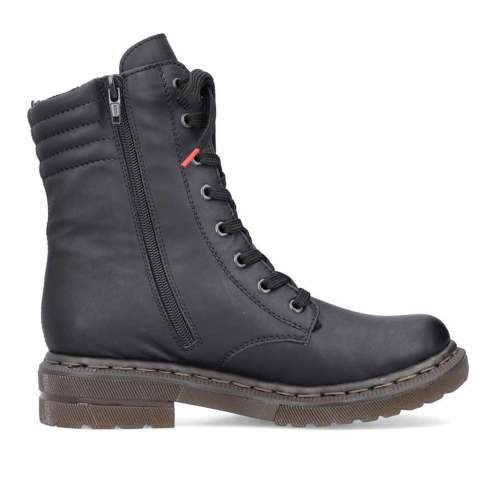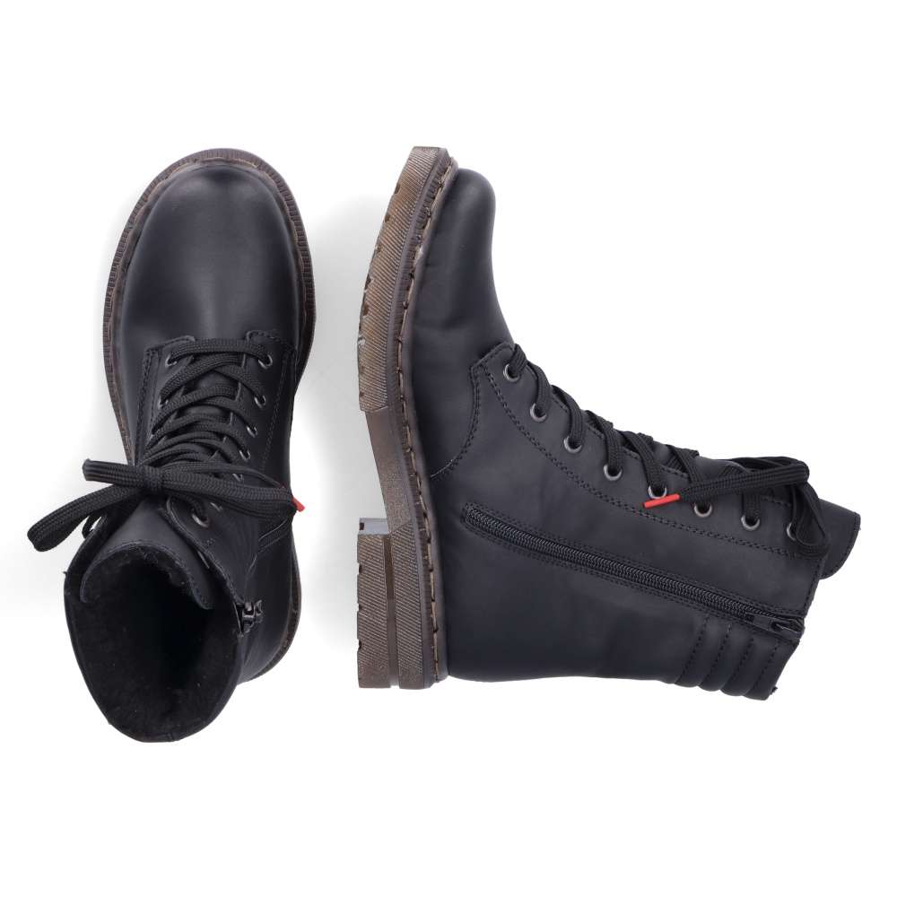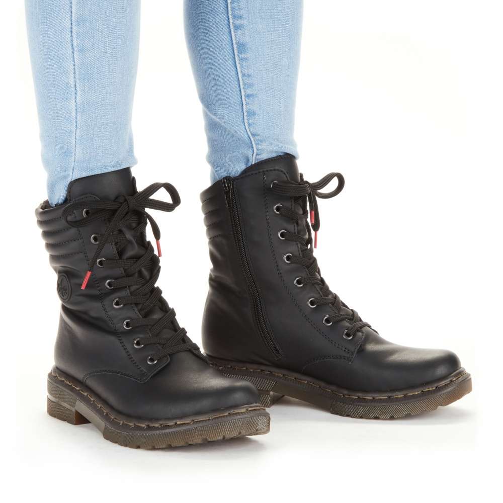 Tento vysoký dámský kotník značky RIEKER ocení každá žena s duší drsňačky. Hladký svršek je zdobený jemným prošíváním a decentním logem značky. Tkaničky jsou ozvláštněny kontrastním červeným zakončením. Pomocí šněrování si botu přizpůsobíte Vaší noze, zip poslouží zase k rychlému nazutí a vyzutí. Teplá podšívka a měkoučká stélka Vás budou hýčkat na každém kroku i v těch nejmrazivějších dnech. Jakmile jednou vyrazíte ven v těchto trendy botách, nebudete již chtít obout žádné jiné. Technologie: Antistress – podešev je díky této technologii lehká, flexibilní, absorbuje nárazy při došlapu a snadno se přizpůsobí každé noze.