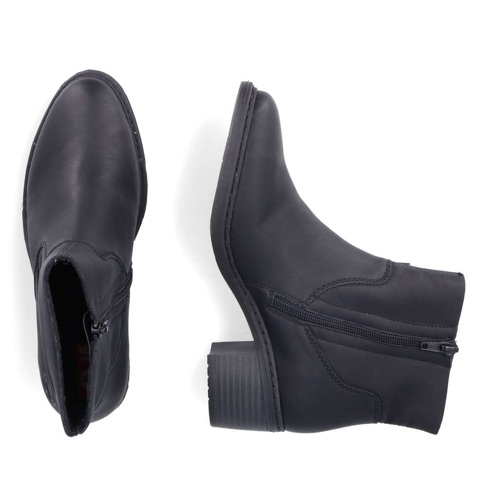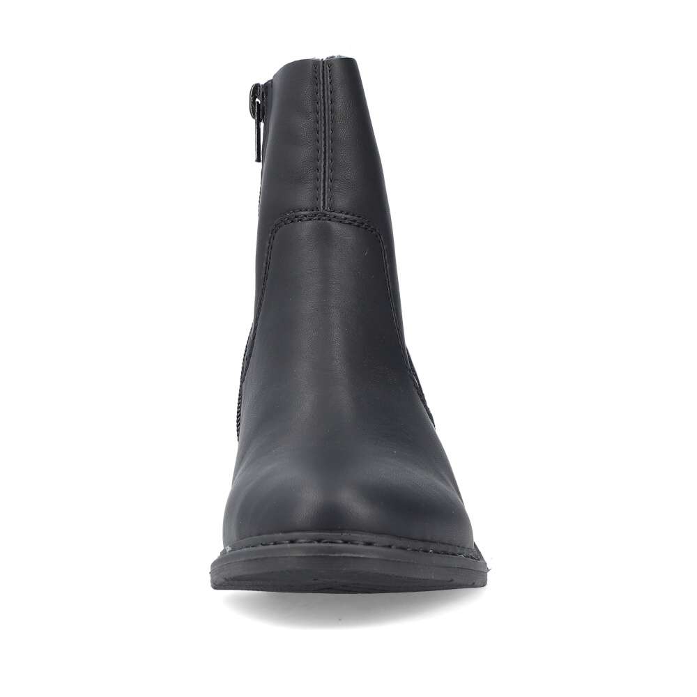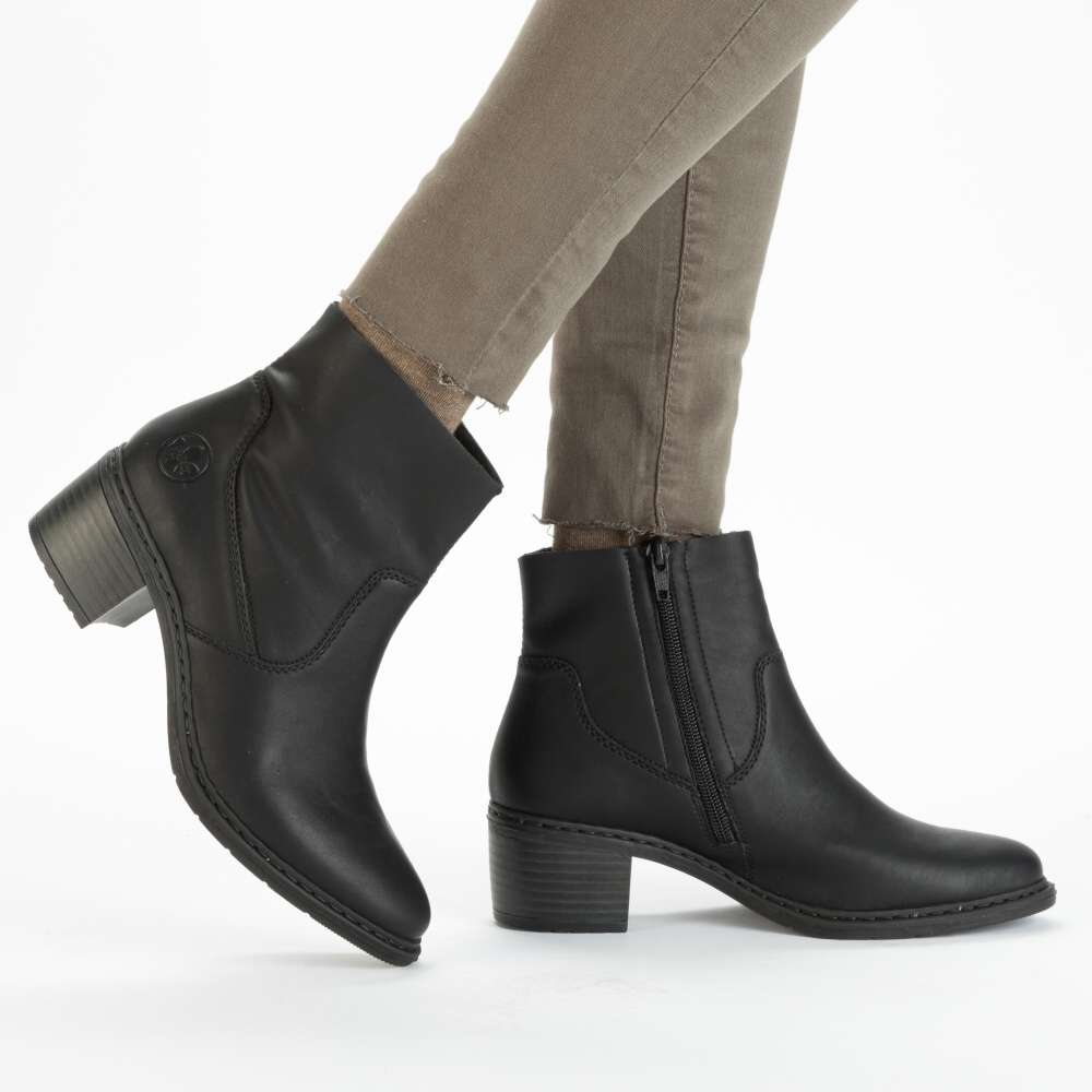Dámské boty RIEKER Vás díky své jednoduchosti budou provázet každým dnem. Černý svršek je pouze decentně prošit a doplněn vytištěným logem značky. Nazutí usnadní zip z boční strany. Díky měkké stélce a flexibilní podešvi můžete v botách strávit celý den a pořád si budete připadat jako v bavlnce. Ani chladnější období vás nezaskočí a nohy budou v teple díky zateplení. Technologie: Antistress - podešev je díky této technologii lehká, flexibilní, absorbuje nárazy při došlapu a snadno se přizpůsobí každé noze.