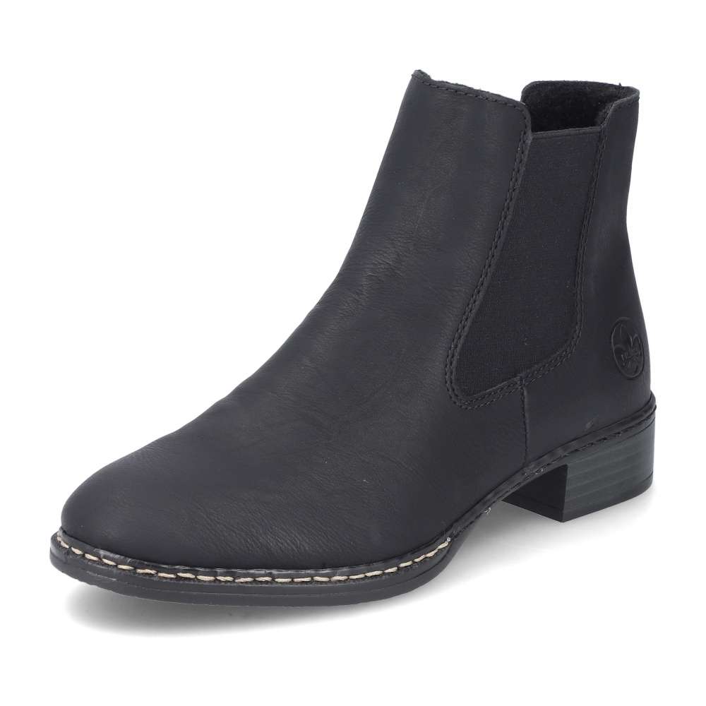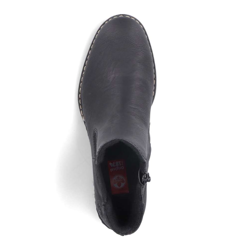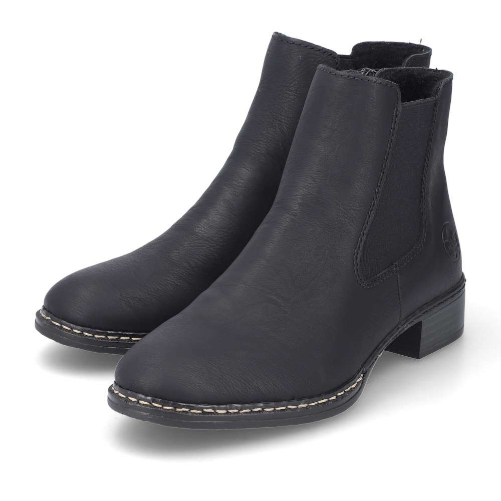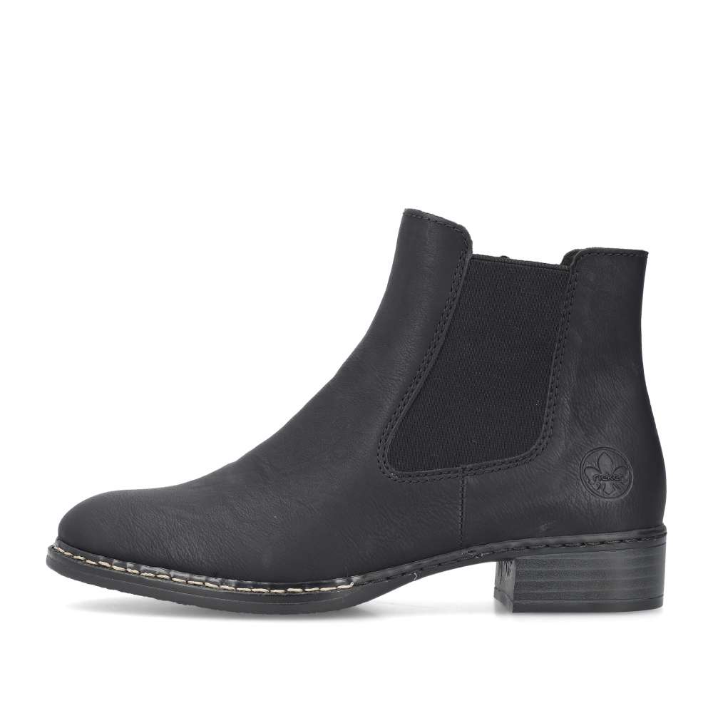 Dámská kotníková obuv RIEKER bude Vaším ideálním každodenním společníkem. Černý svršek má jako ozdobné prvky logo vtisknuté na boku boty, pružnou gumičku na vnější straně, která zároveň pomůže ke snadnějšímu obutí. Zip z vnitřní části usnadní obutí a o pohodlí na každém kroku se postará měkká stélka. Kvalitní podešev s nízkým podpatkem je flexibilní a dekorovaná světlým prošitím v přední části. Tento model je vysoce elegantní a vhodný ke všem pracovním i běžným outfitům. Technologie: Antistress – podrážka je díky této technologii lehká, flexibilní, absorbuje nárazy při došlapu a snadno se přizpůsobí každé noze.