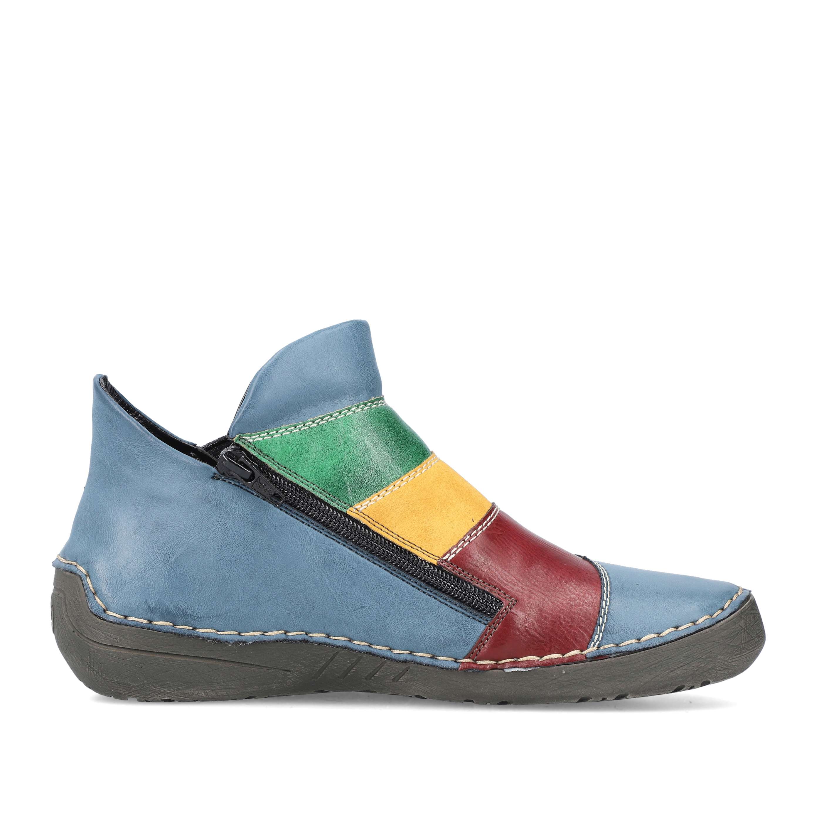 Detailní informace Dámské kotníkové boty značky RIEKER Vás zaujmou na první pohled svým vzhledem a kombinací veselých barev. Botičky jsou opatřeny zipem, tedy jejich obouvání bude lehké a díky vsazené gumičce se dokonale přizpůsobí noze. Podšívka je zateplena hřejivým materiálem, ve kterém Vám bude teplo po celý den a je příjemně měkká. Tato kotníková obuv oživí každý outfit do chladných dnů.