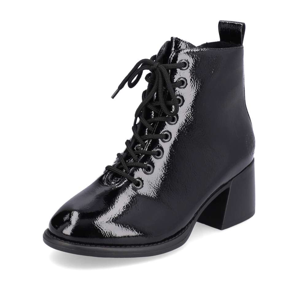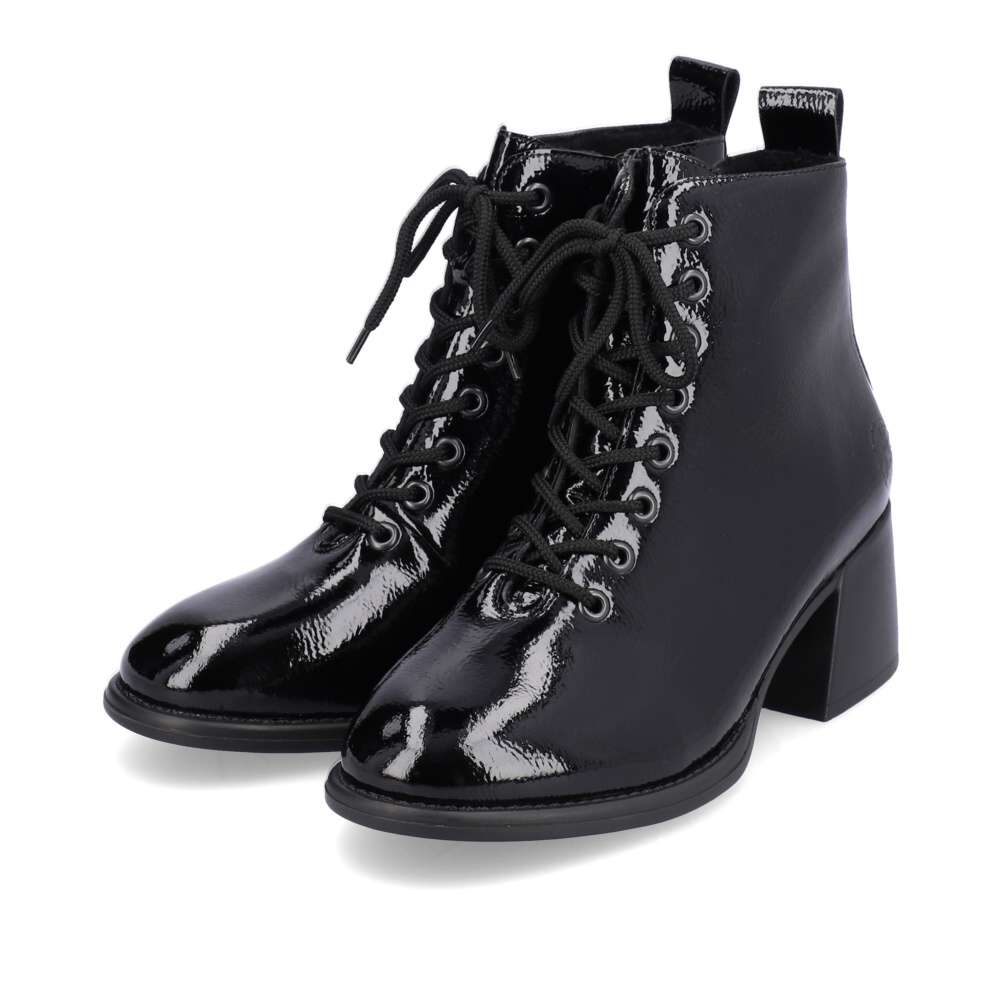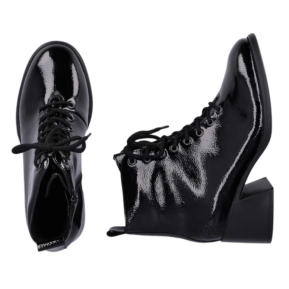 Detailní informace Milovnice módy pozor! Tyto nádherné lesklé kožené kotníčkové boty zdobí decentní logo značky Rieker na patní části. Do botiček jednoduše vklouznete díky skrytému zipu na vnitřní straně a pomocí tkaniček dotáhnete dle potřeby. Umělá kožešina spolu s měkkou stélkou se postarají o pocit pohodlí po celý den. Kvalitní podešev vybavena technologií Antistress, která absorbuje nárazy došlapu disponuje širokým podpatkem, který bude velmi lichotit Vašim nožkám. Zachovejte si svůj styl a pořiďte si tyto botky, které Vás neomrzí.