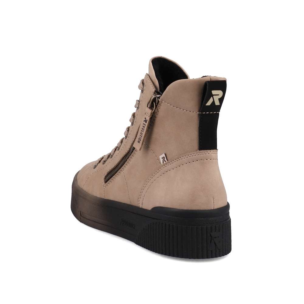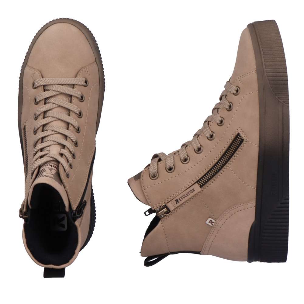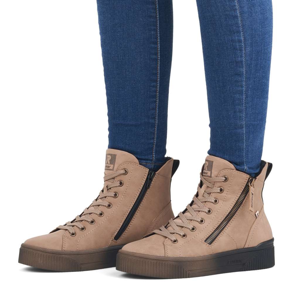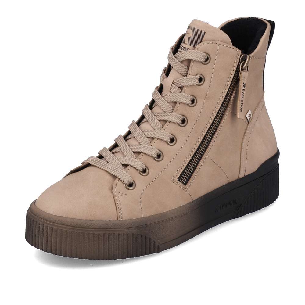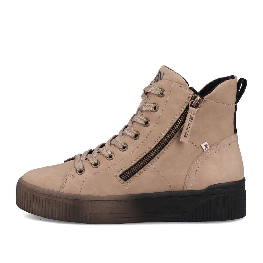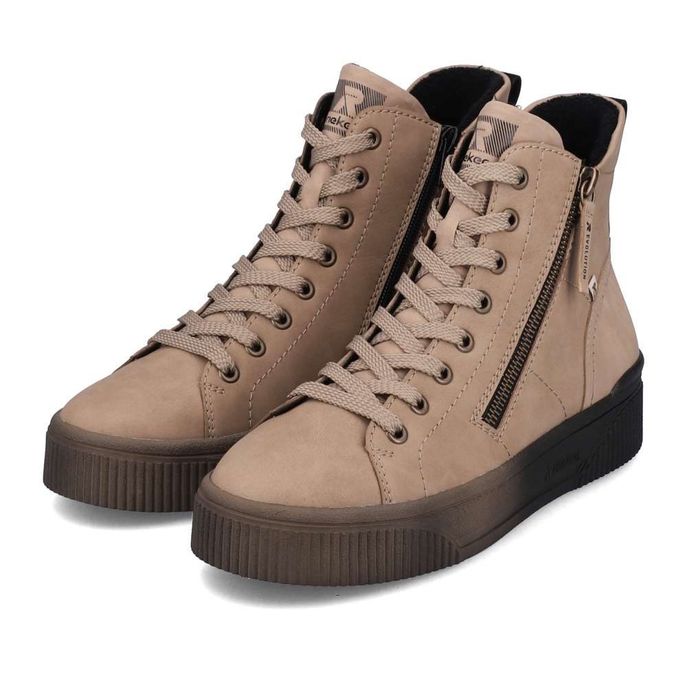 Rieker Revolution je nová řada moderní sportovní obuvi s obrovským důrazem na komfort a pohodlí i při celodenním nošení. Vyšší tenisky v koženém provedení mají svršek zdobený zipem a celkovému vzhledu dominuje kontrastní podešev. Nazutí bude snadné díky vnitřnímu zipu a šněrováním si je upravíte přímo k Vašemu chodidlu. Při dlouhodobé chůzi oceníte měkkou vyjímatelnou stélku vyrobenou, budou společníkem jak na cestě do práce, tak na výlet s rodinou.
